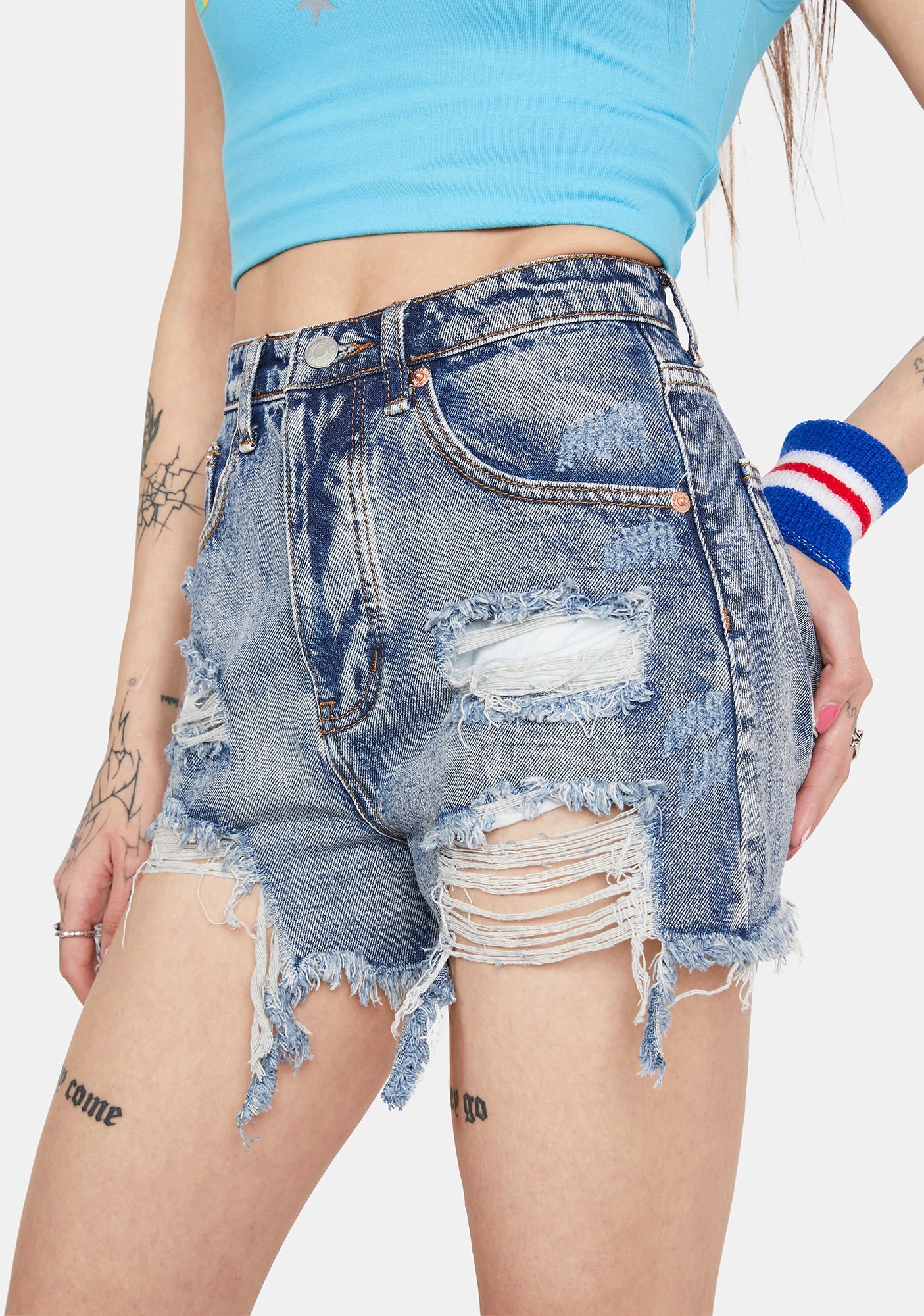 Medium Wash Miss Go Getter Distressed Denim Shorts