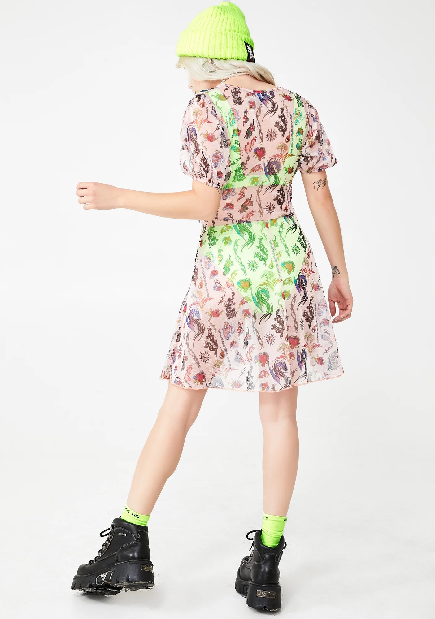Mesh Tattoo Print Dress