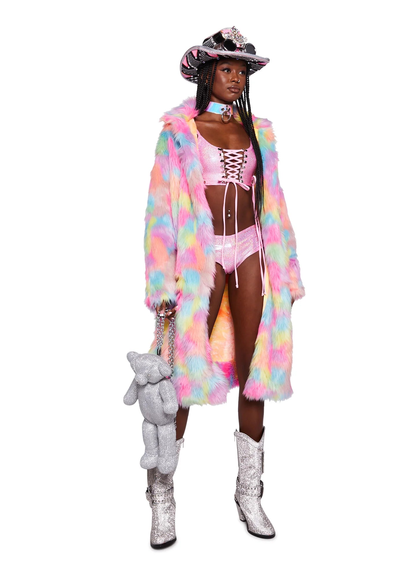 Metallic Lace-Up Crop Top