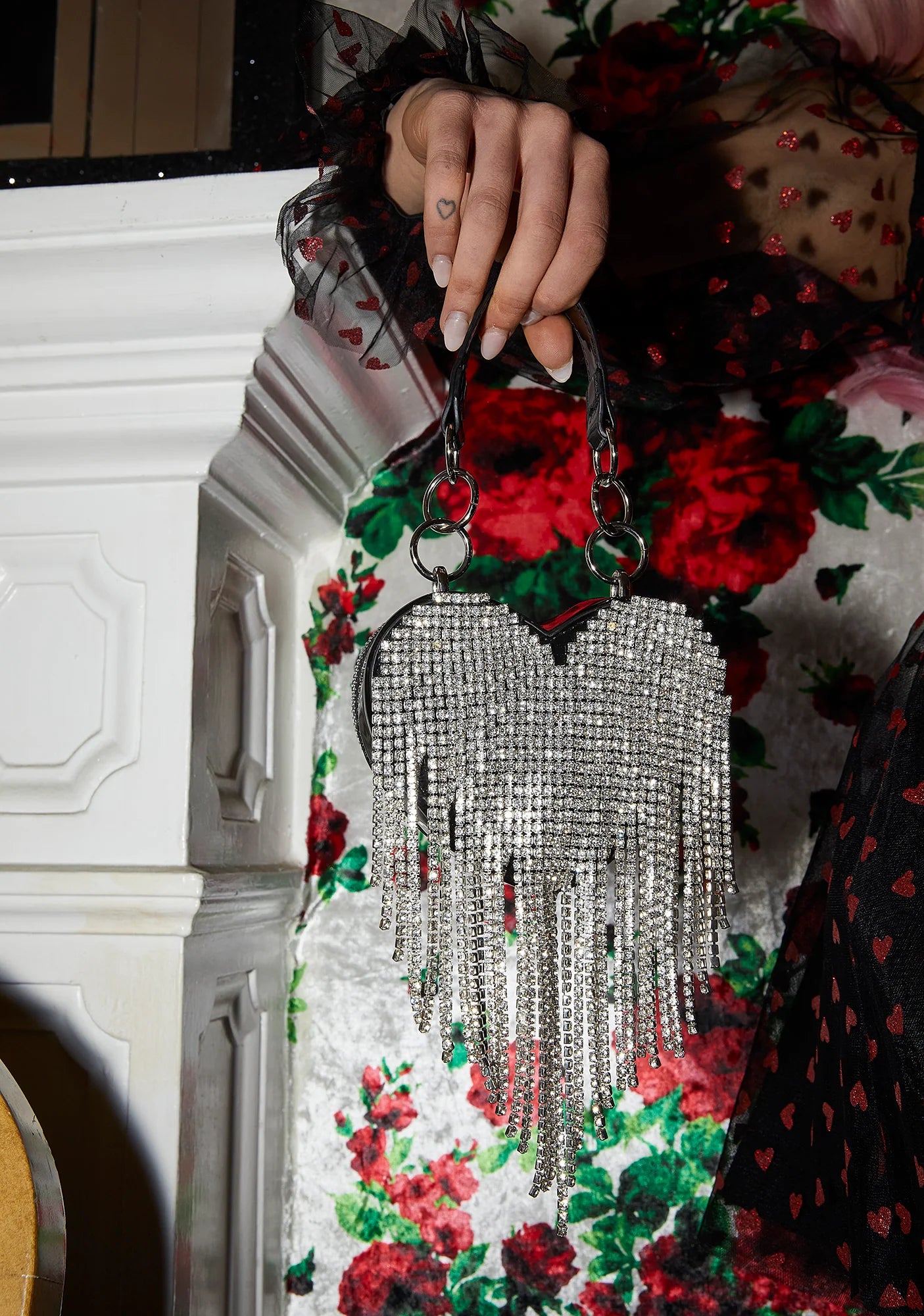 Mine All Mine Rhinestone Heart Mini Purse - Black