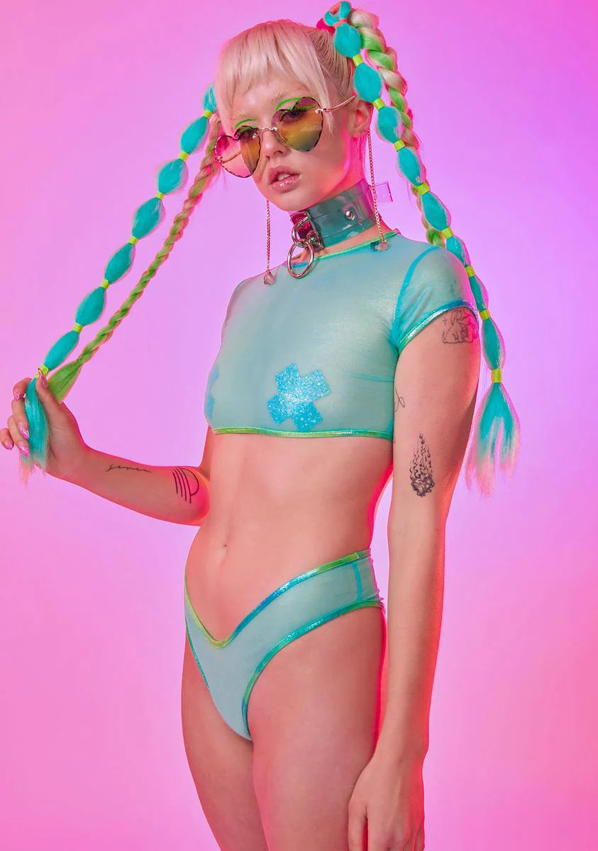 Mint V-Cut Mesh Booty Shorts