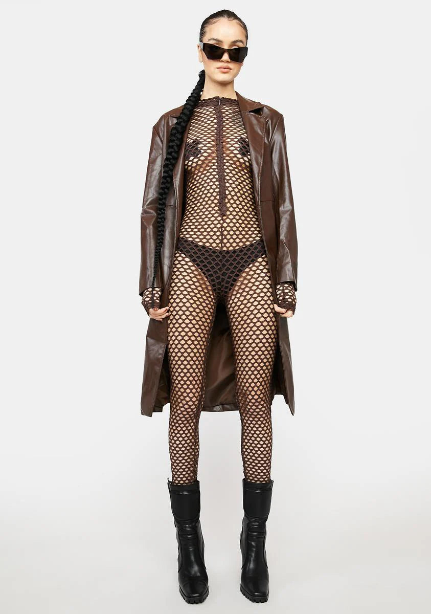 Mocha Call Me Bad Fishnet Catsuit