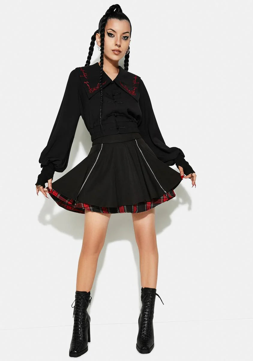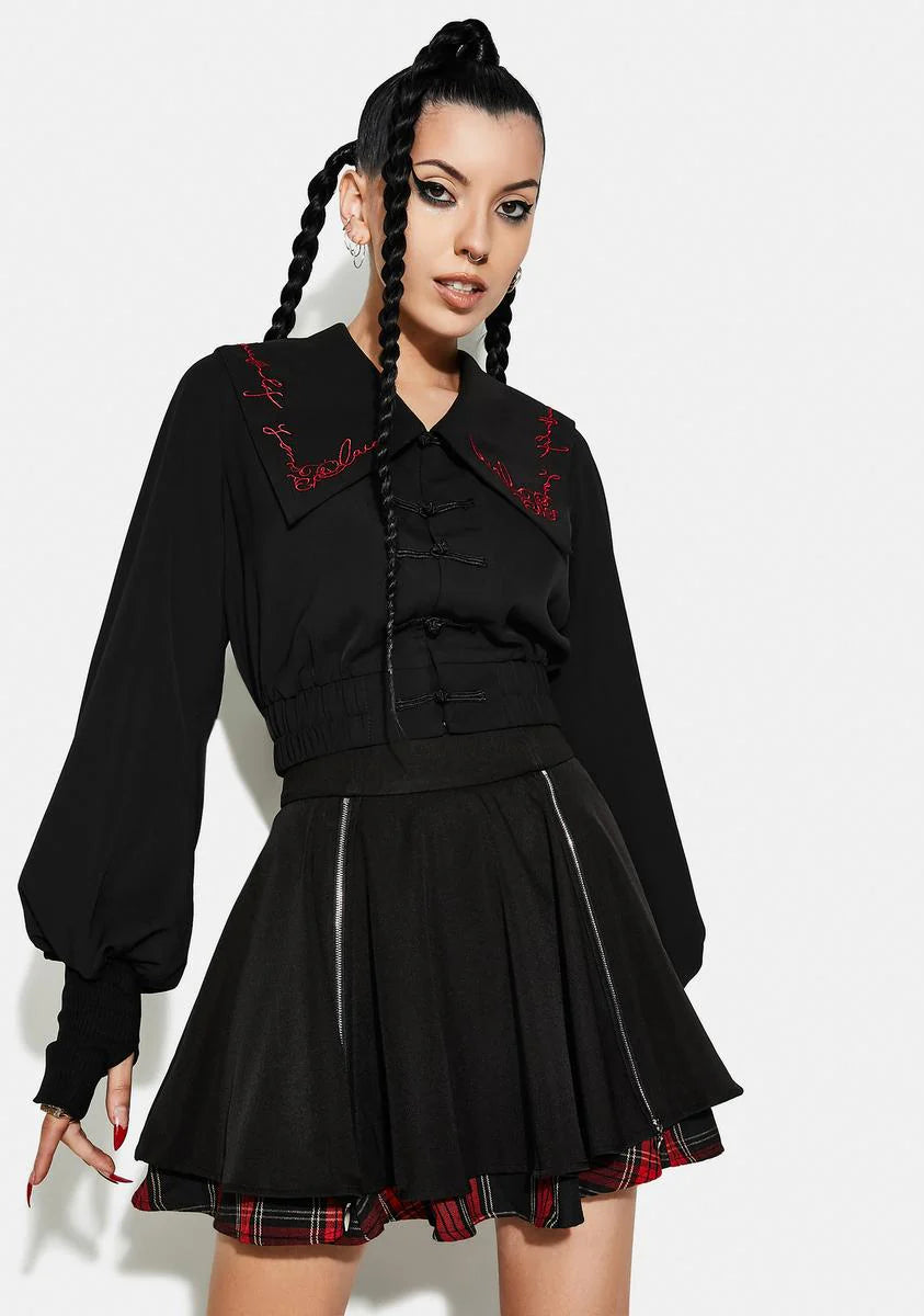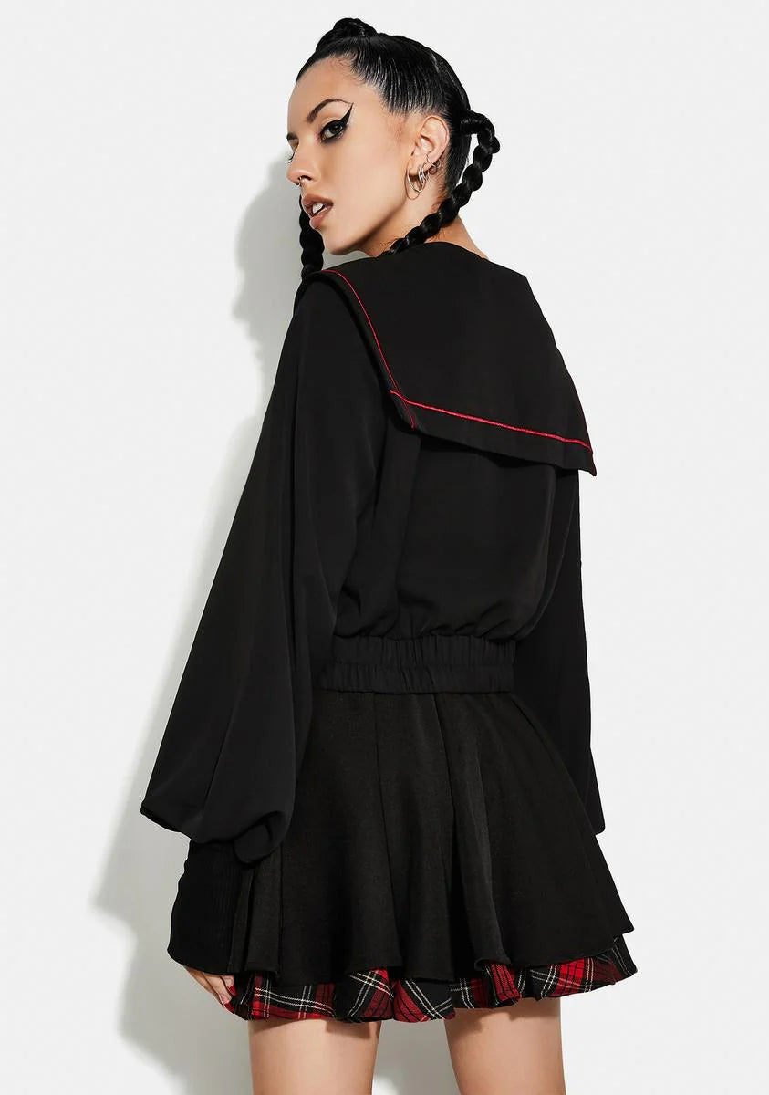 Navy Collar Embroidered Top
