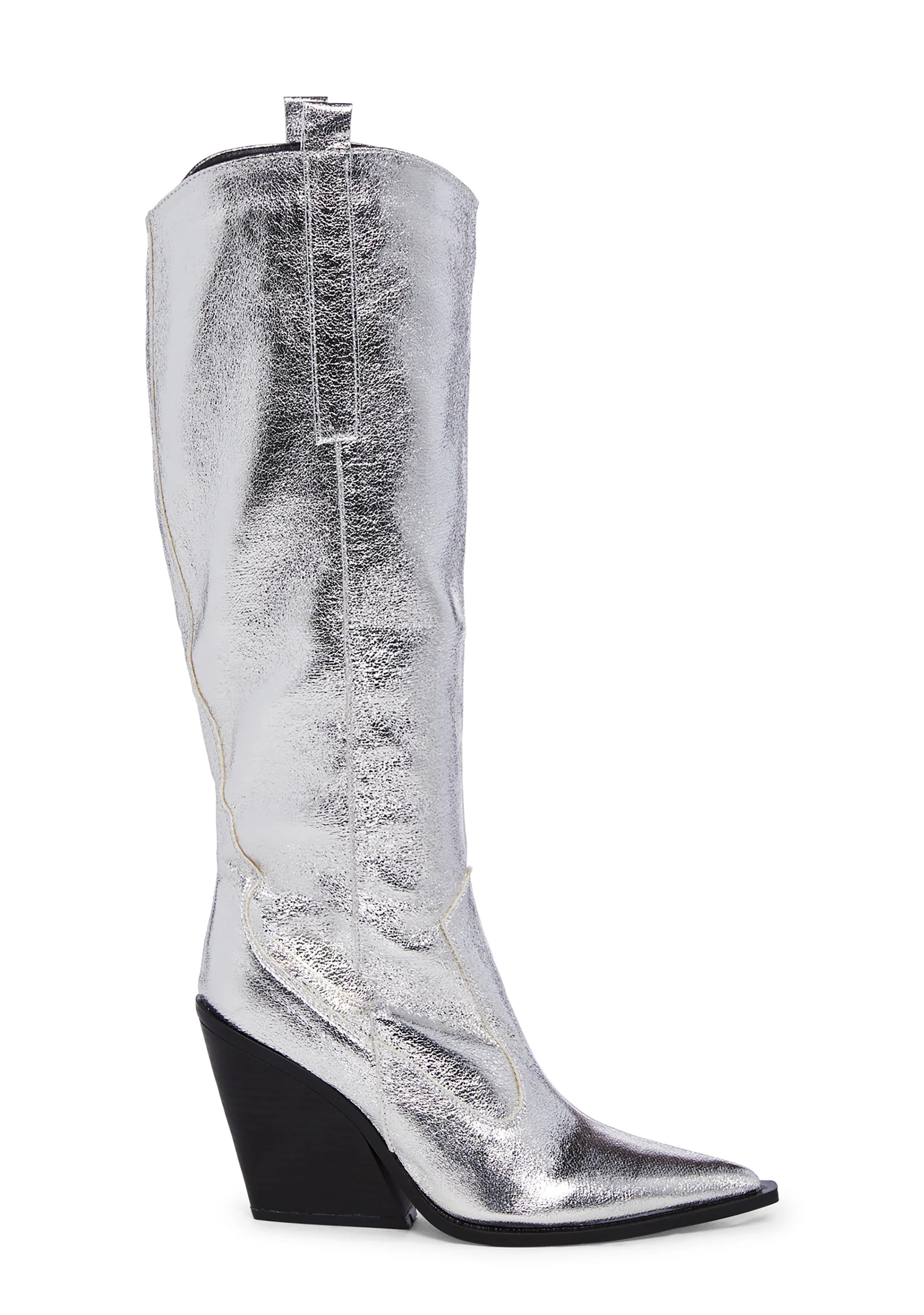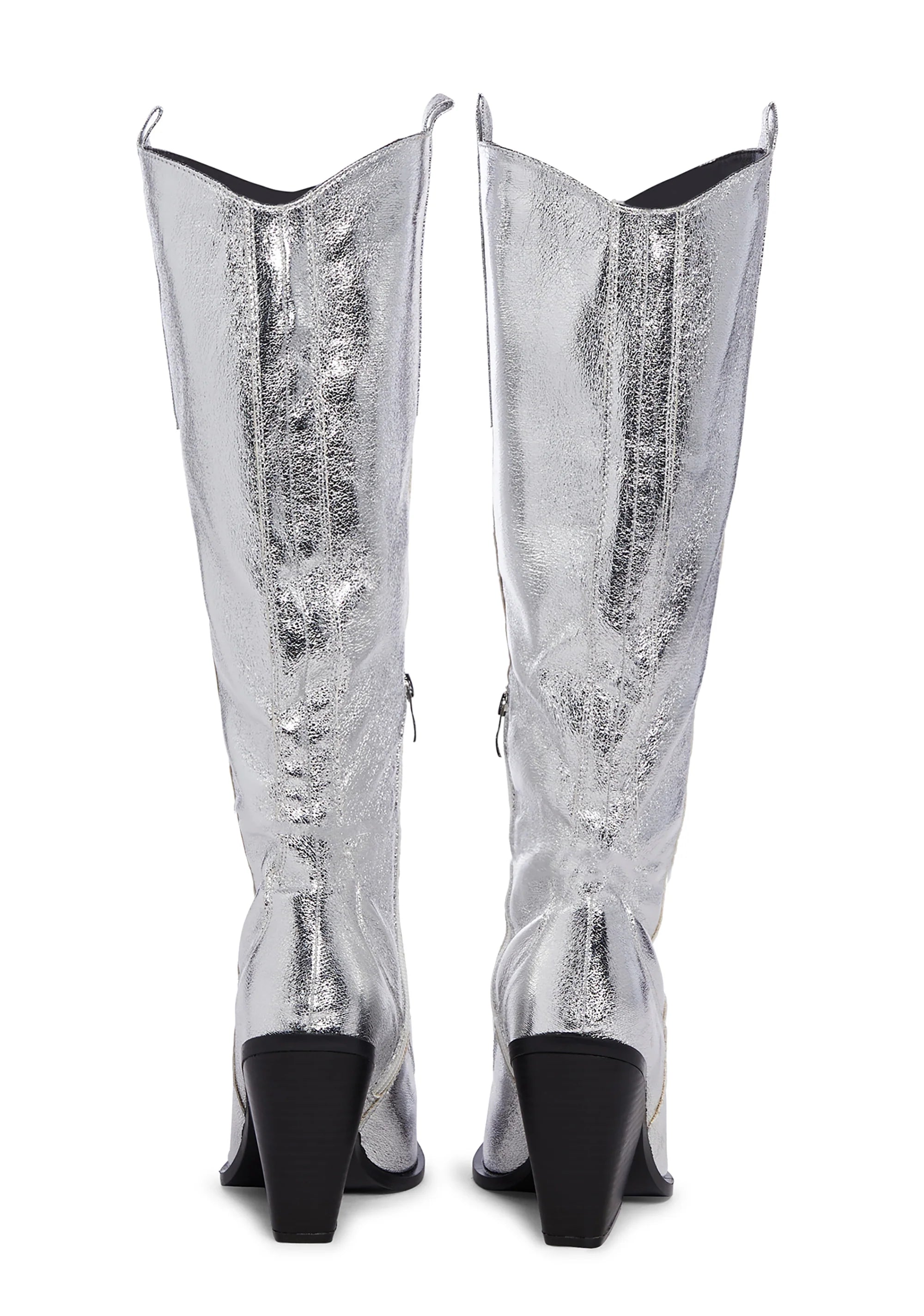 Nevada Knee High Wedge Cowboy Boots - Silver