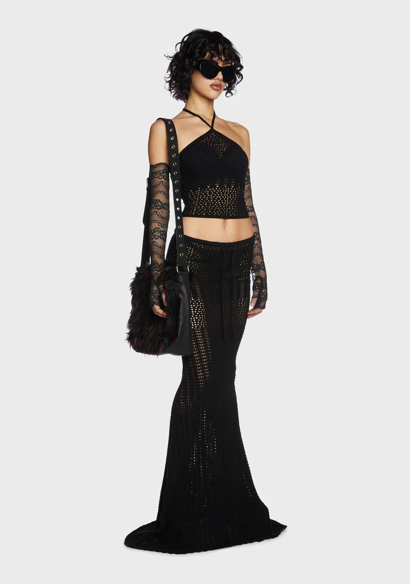 Night Radiance Crochet Maxi Skirt