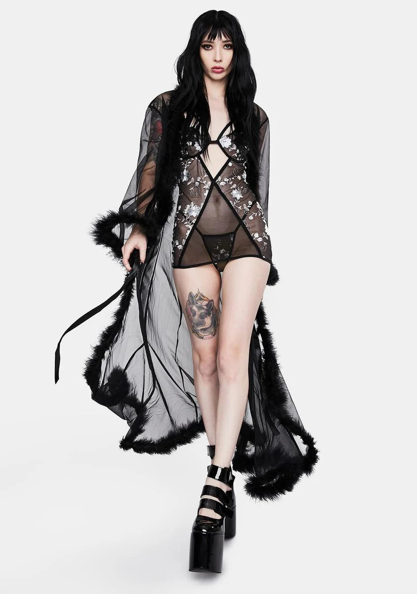 Noir Mistress In Marabou Long Robe