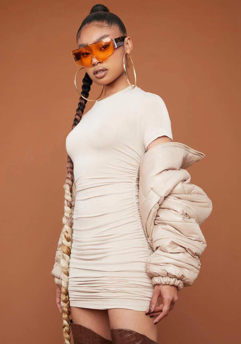 Nude Devoted To You Ruched Mini Dress
