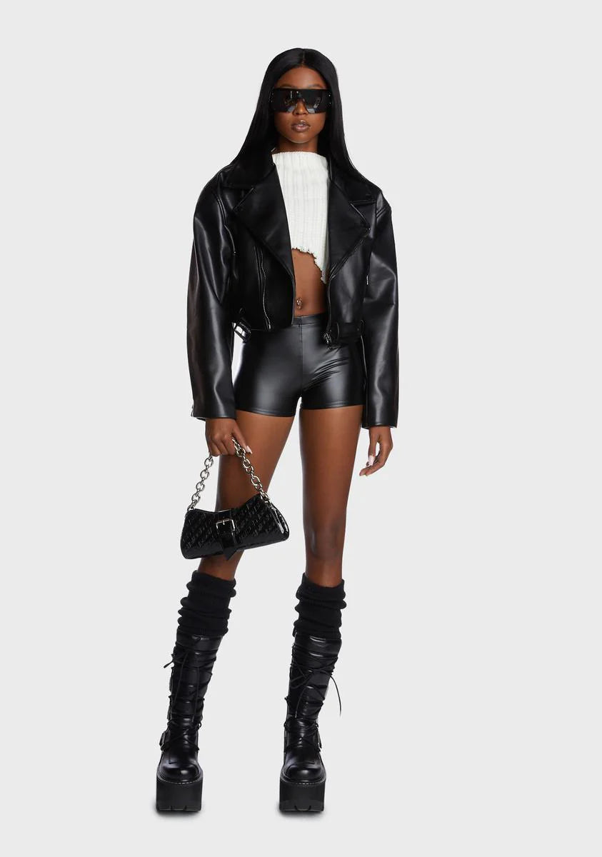 On The Edge Vegan Leather Shorts