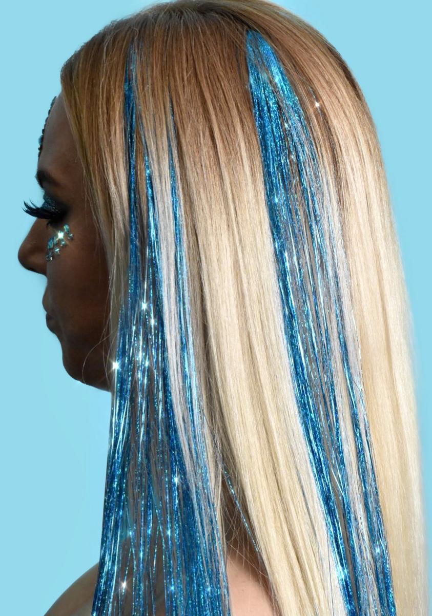 Peace Blue Holo Hair Tinsel Clip In Extensions
