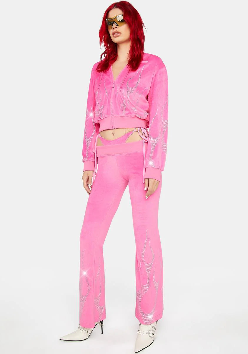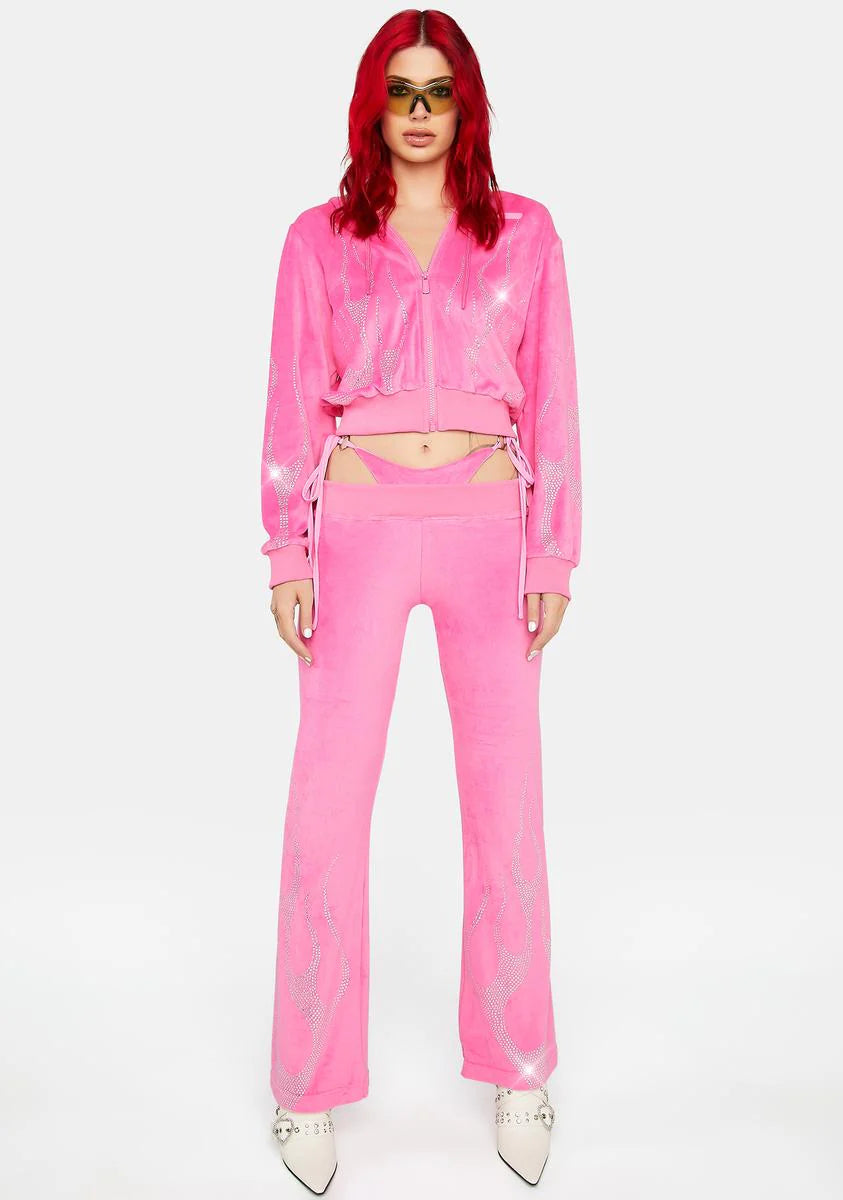 Pink Flame Velour Thong Pants