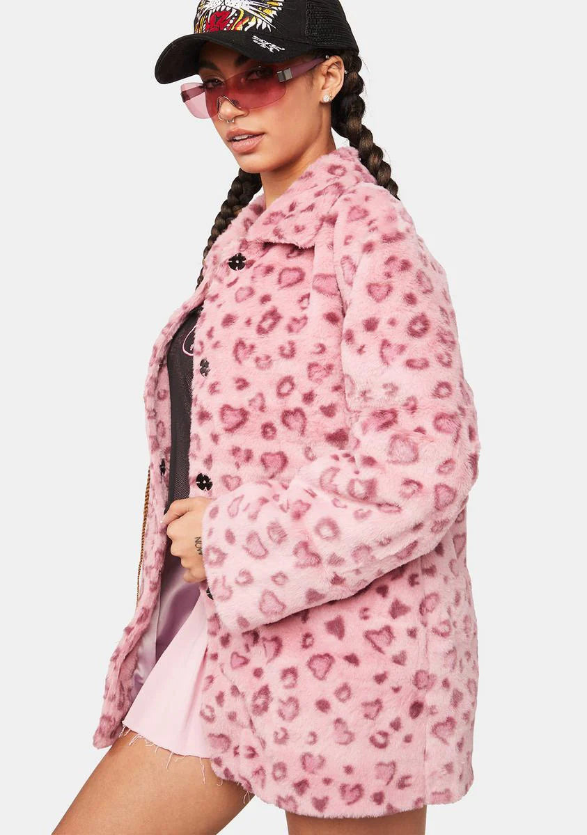 Pink Heart Faux Fur Coat