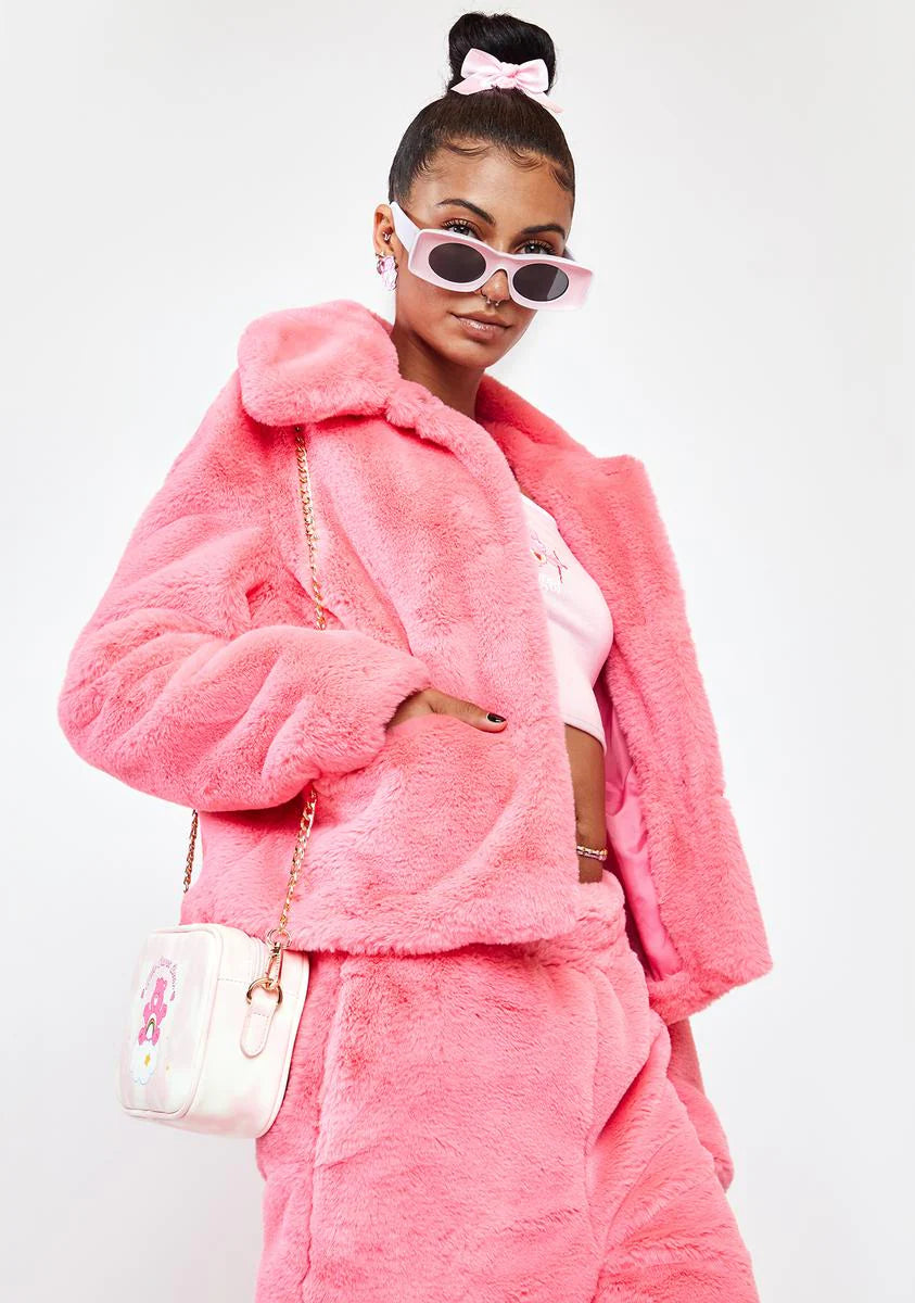 Pink Jax Cropped Faux Fur Jacket