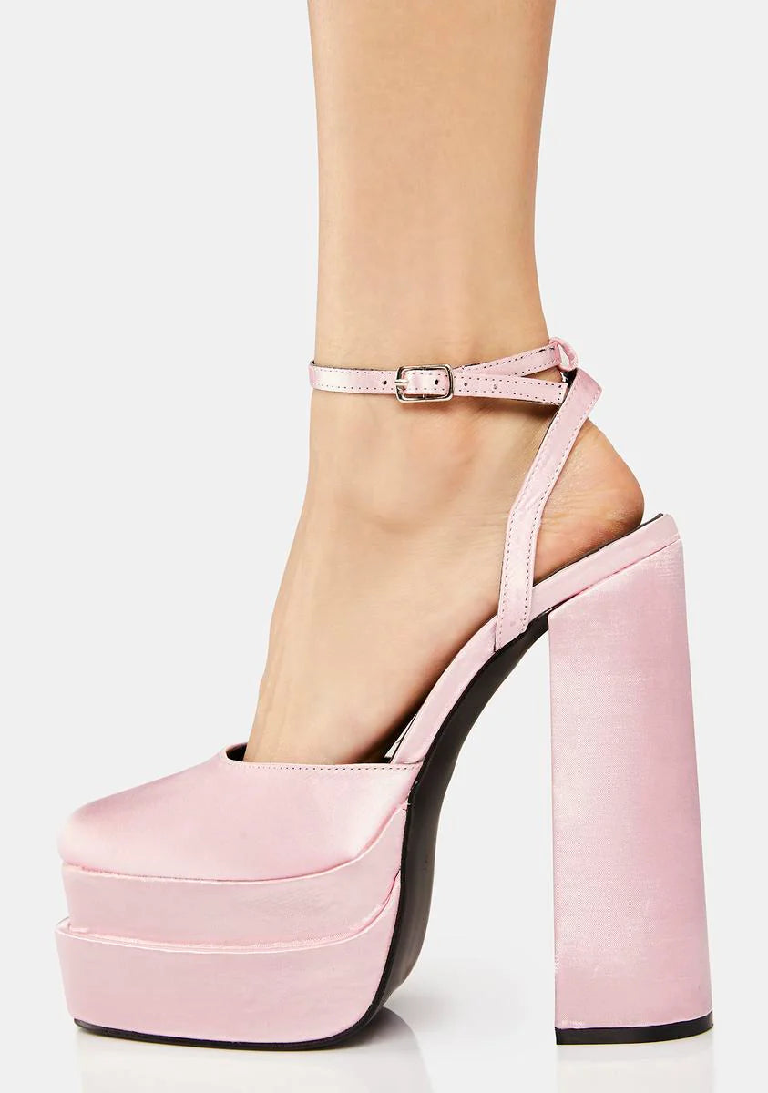 Pink Satin Moonchild Platform Heels