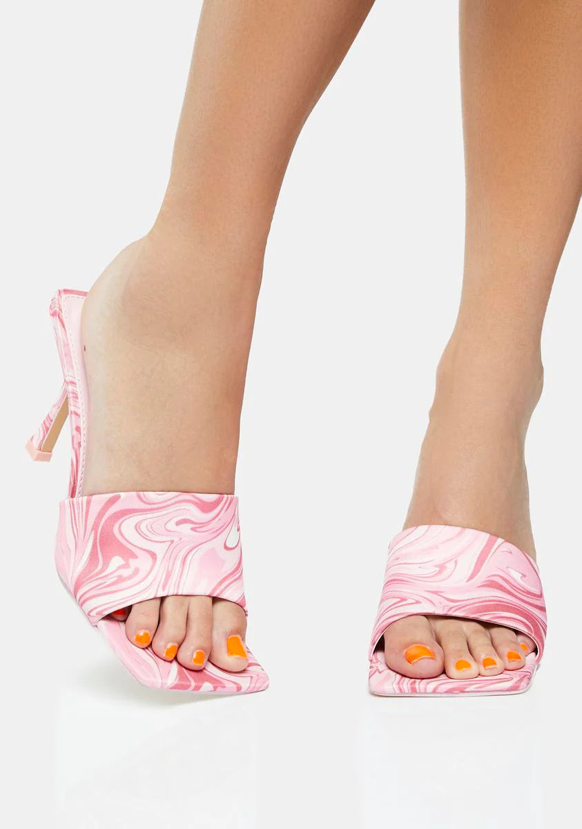 Pink Swirl Print Squared Toe Heeled Mules
