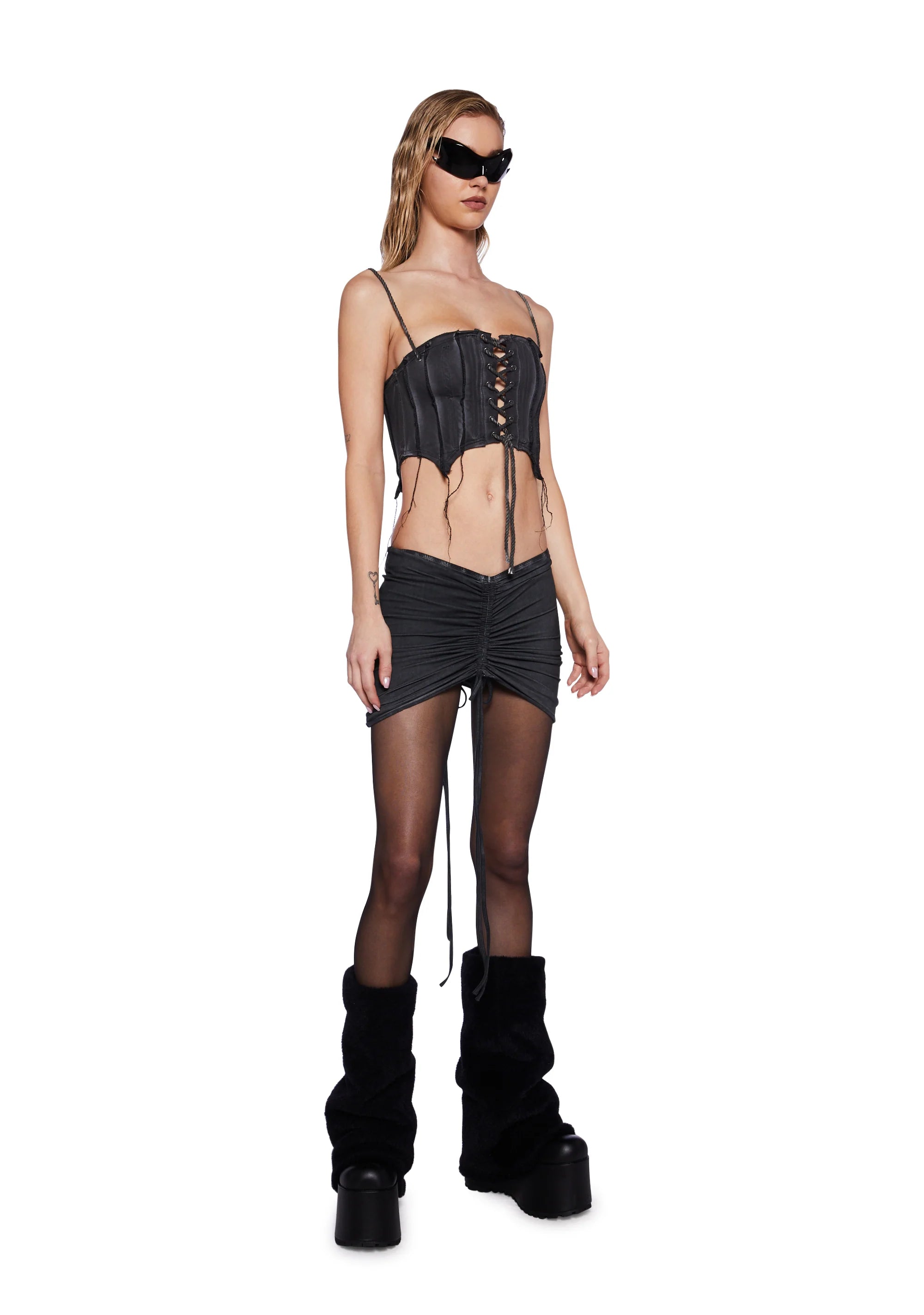 Pitch Washed Corset Top - Black