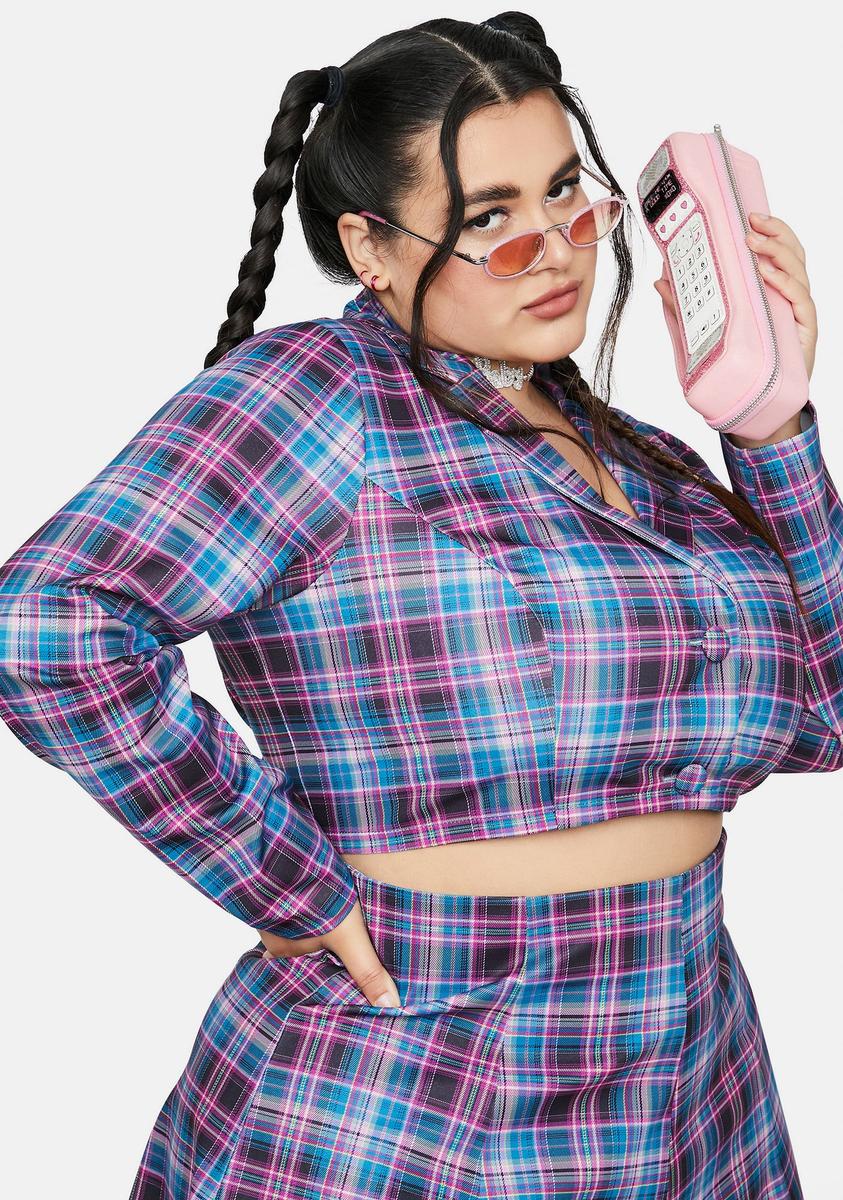 Plus Back 2 School Baddie Plaid Blazer