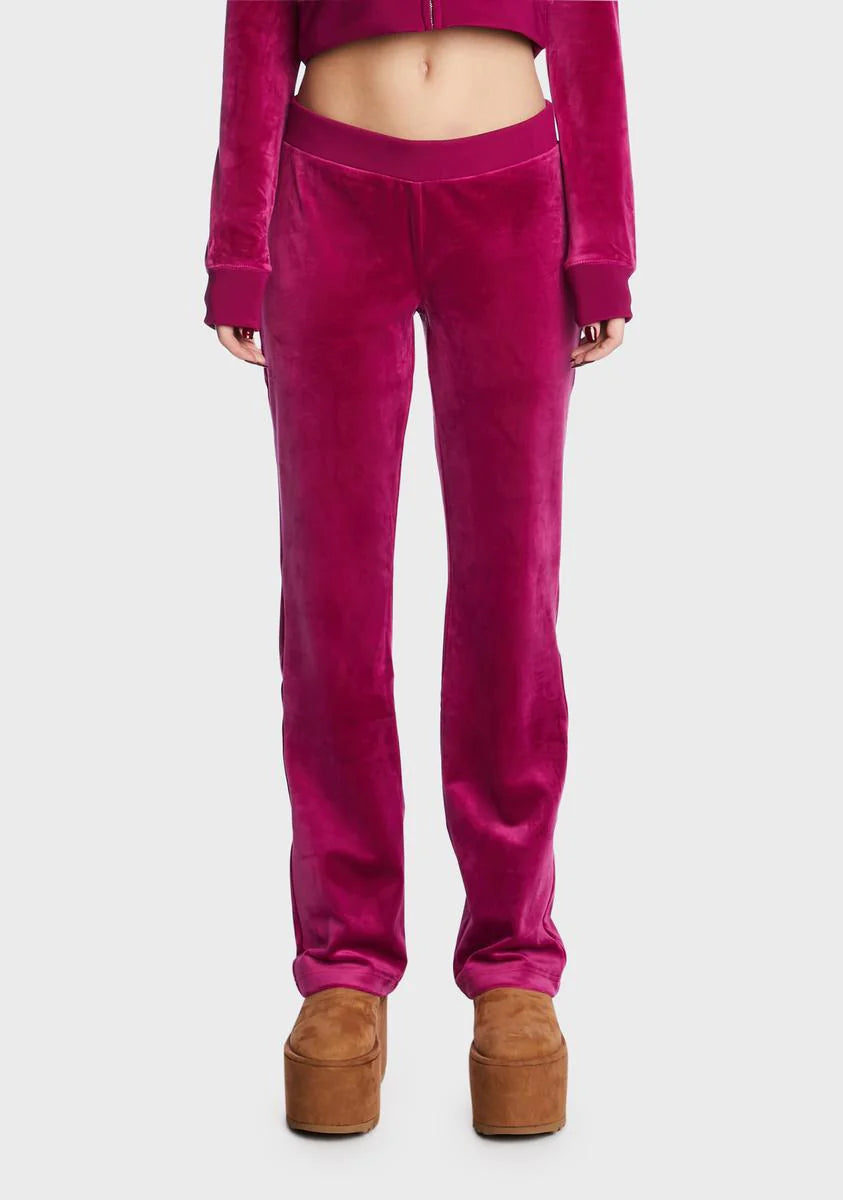 Raspberry Glaze Big Bling Velour Track Pants
