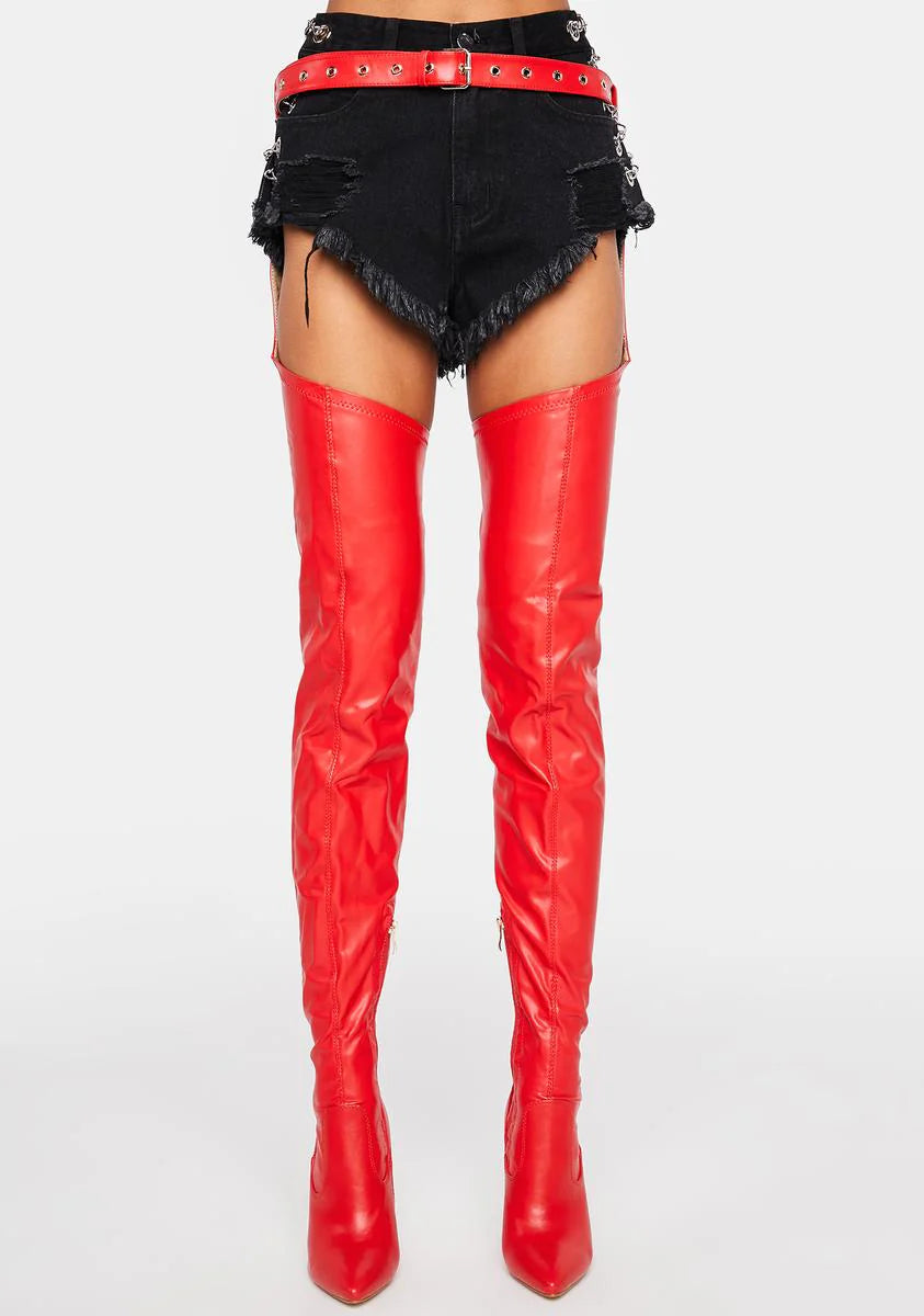 Red I'm Movin On Belted Stiletto Boots