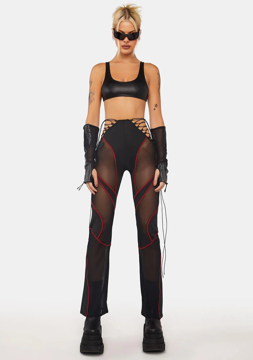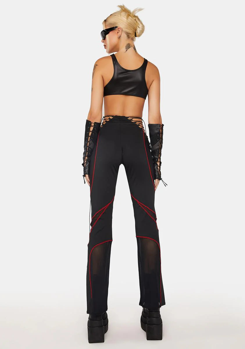 Red Lace-Up Stretch Pants