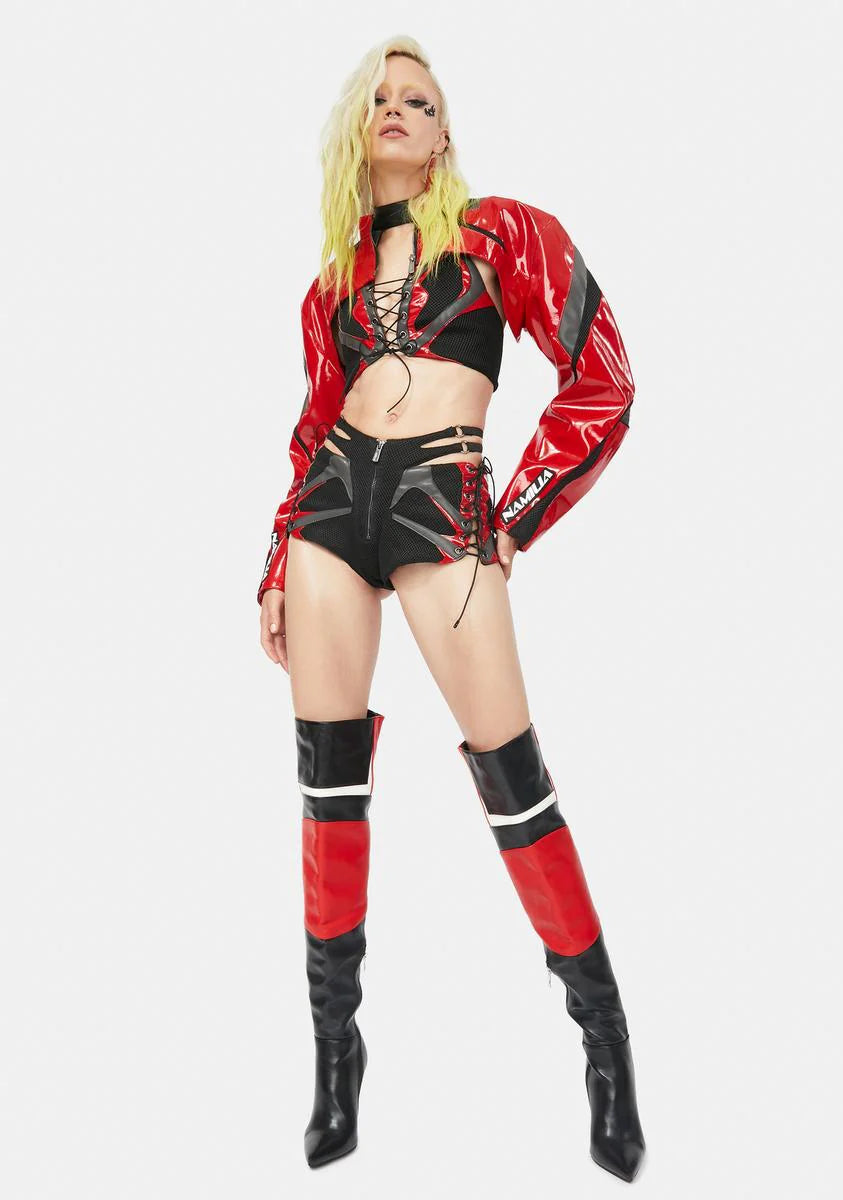 Red Patent Sneaker Moto Hot Pants