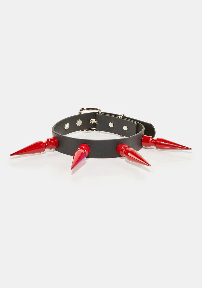 Red Spiked Choker Necklace