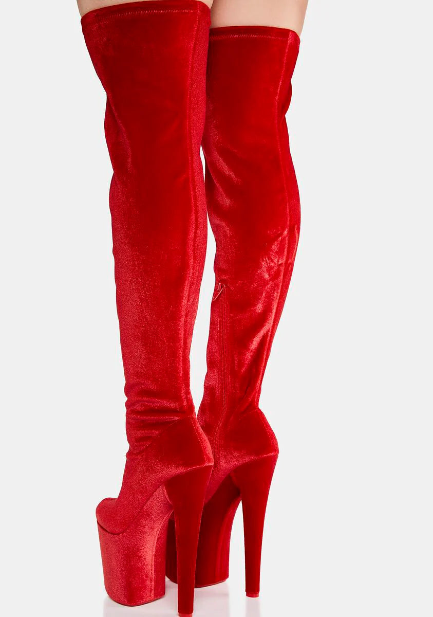Red Velvet Twerk Platform Boots