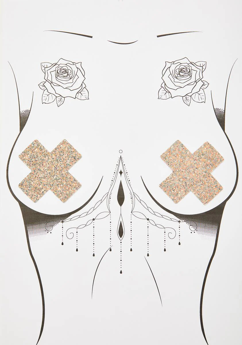 Reflective Glitter Cross Pasties