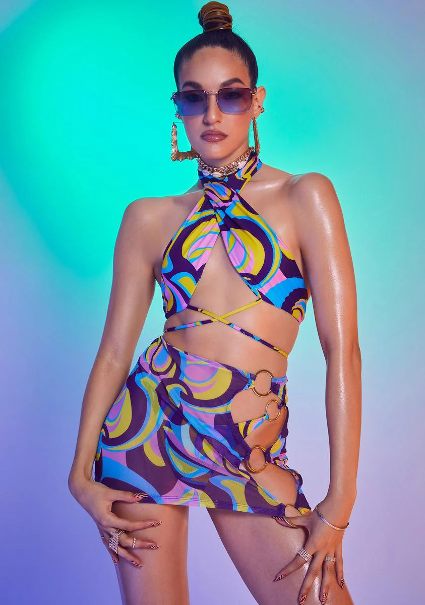 Retro Floral Print Mesh Sarong