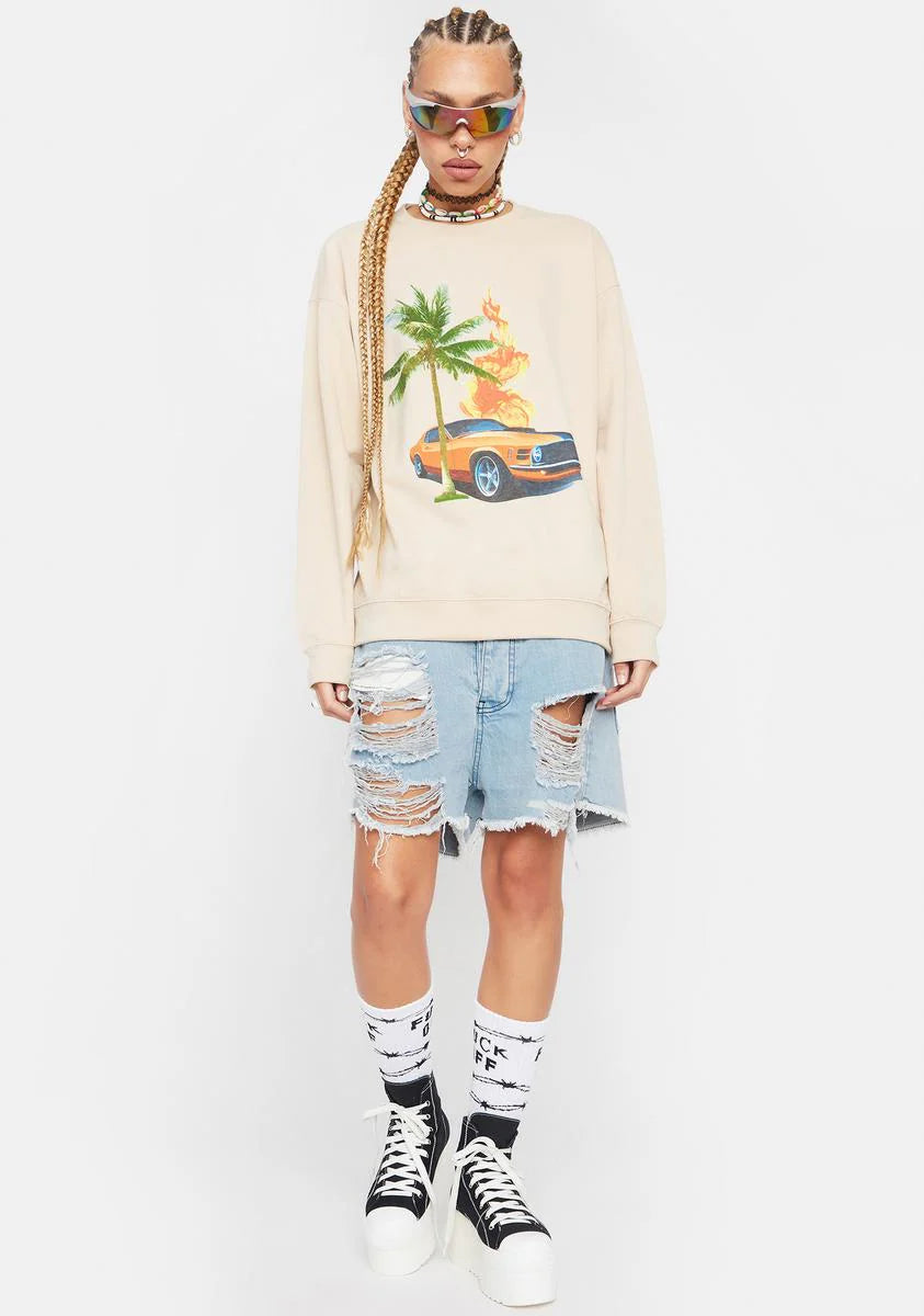 Retro Graphic Crewneck Sweater