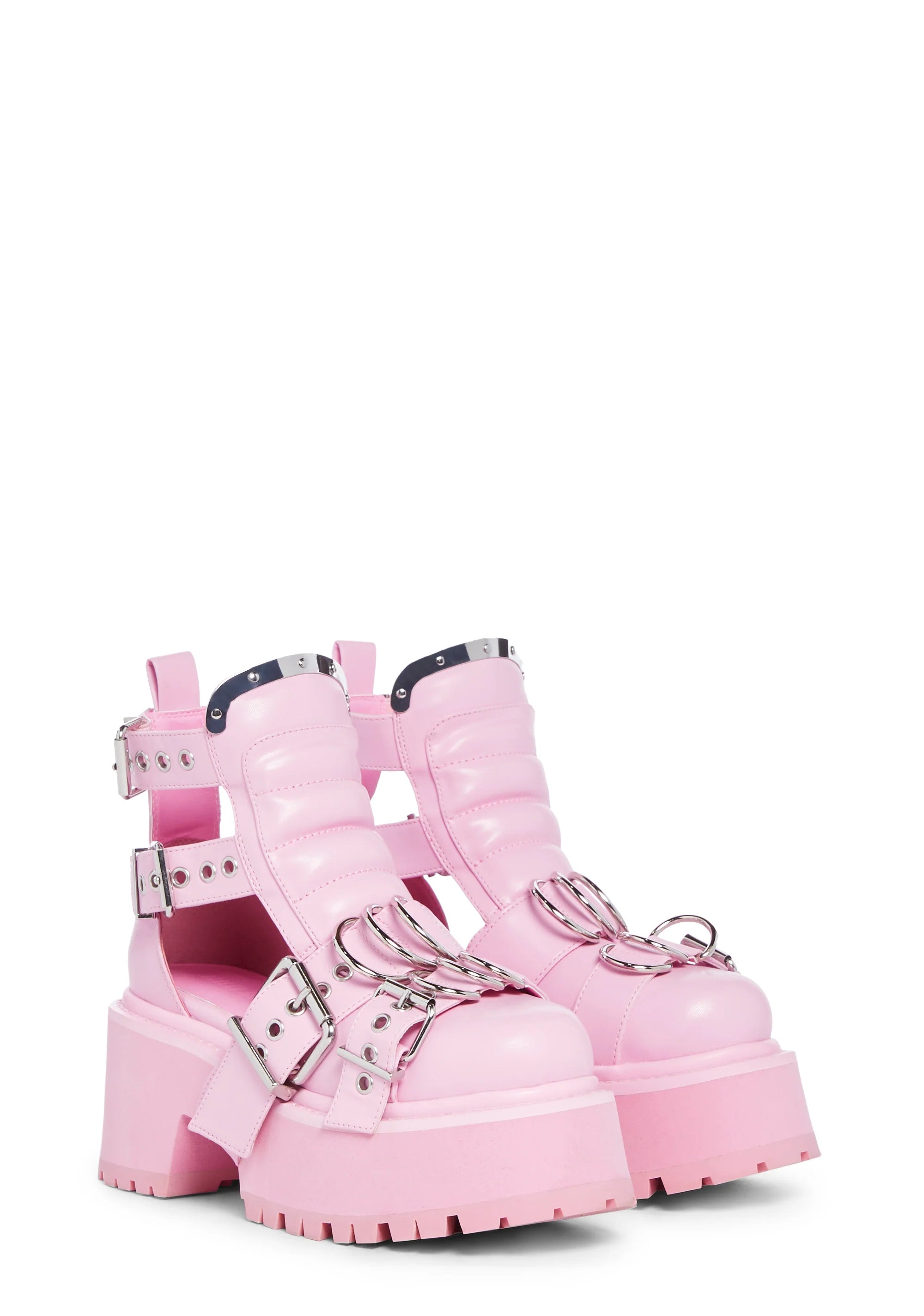 Rev Your Engine Buckled Boots - Pink