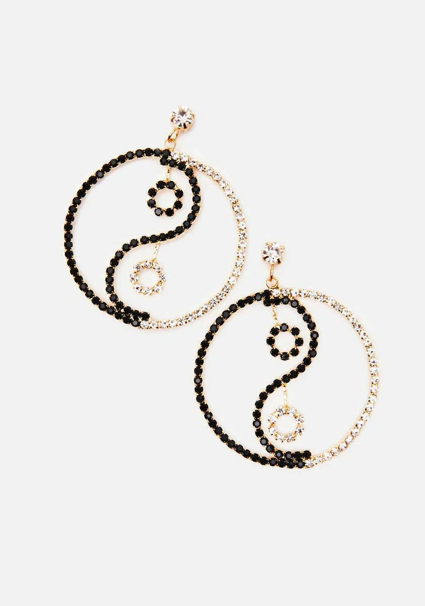 Rhinestone Yin Yang Drop Earrings