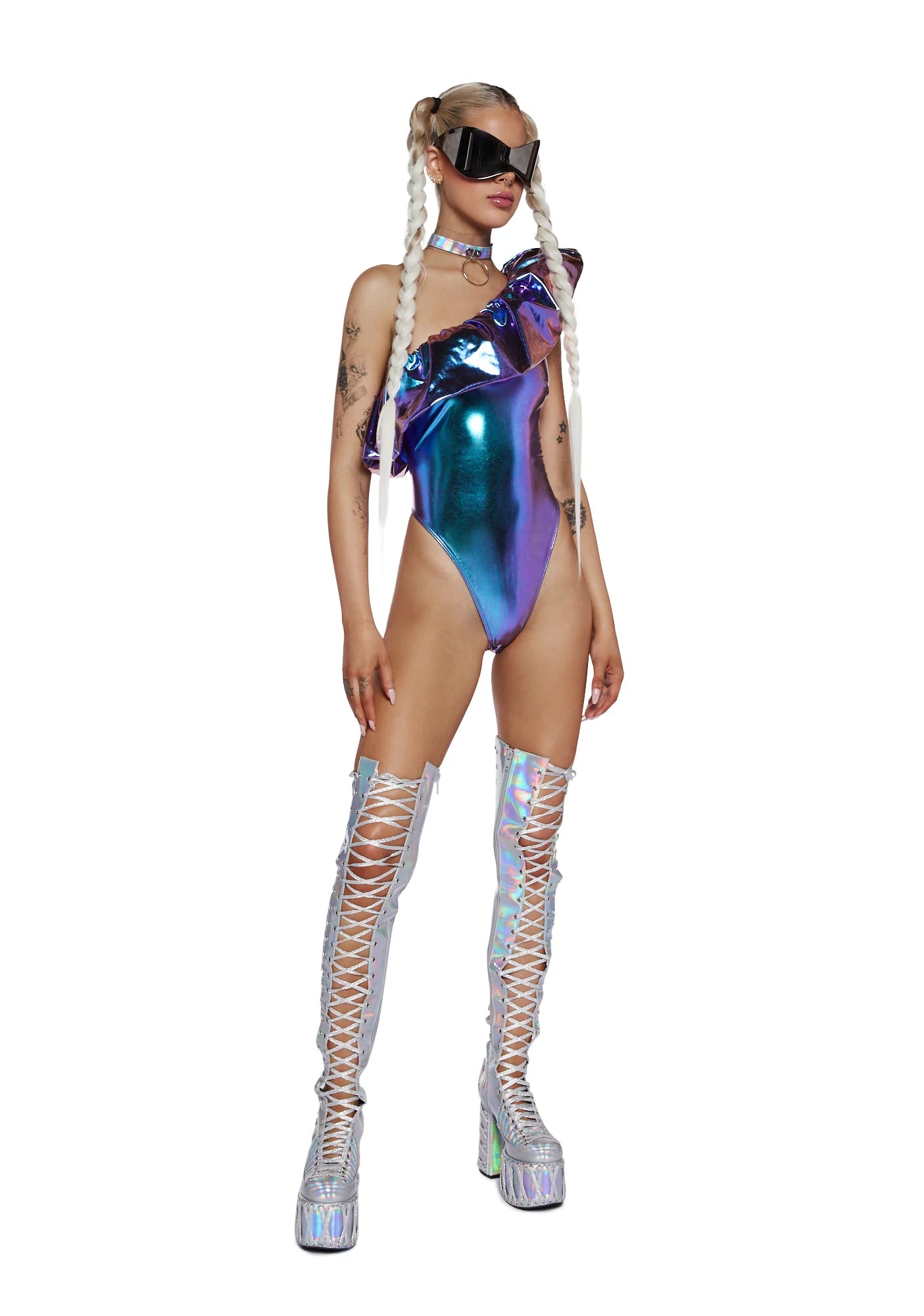 Rhythm Of The Night Ruffled Bodysuit - Blue