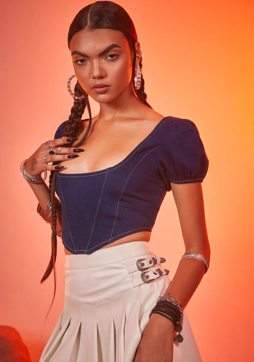 Rodeo Princess Denim Puff Sleeve Top