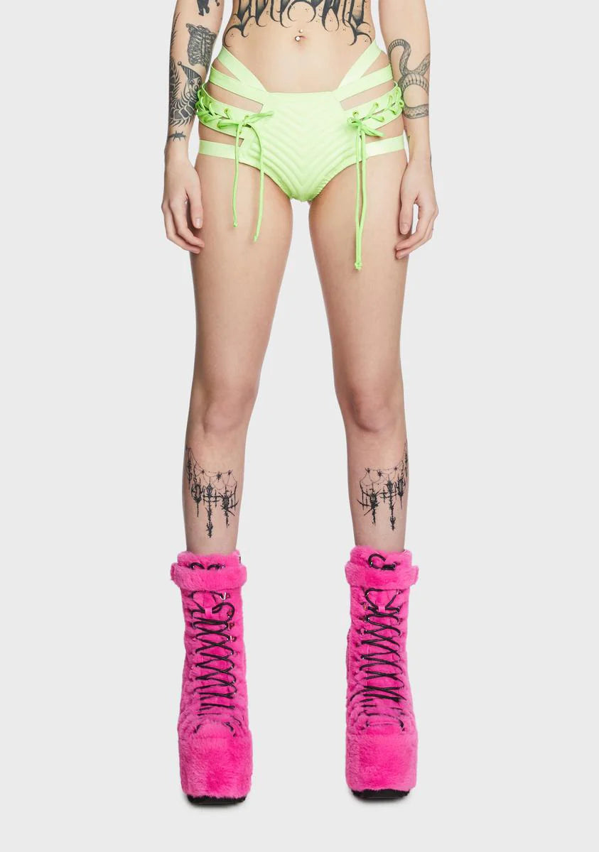 Rude Awakening Lace-Up Shorts - Glow In The Dark