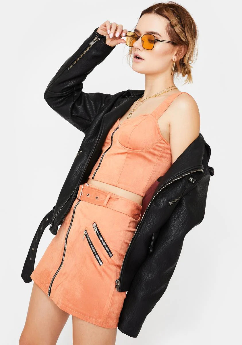 Salmon Zip Mini Skirt