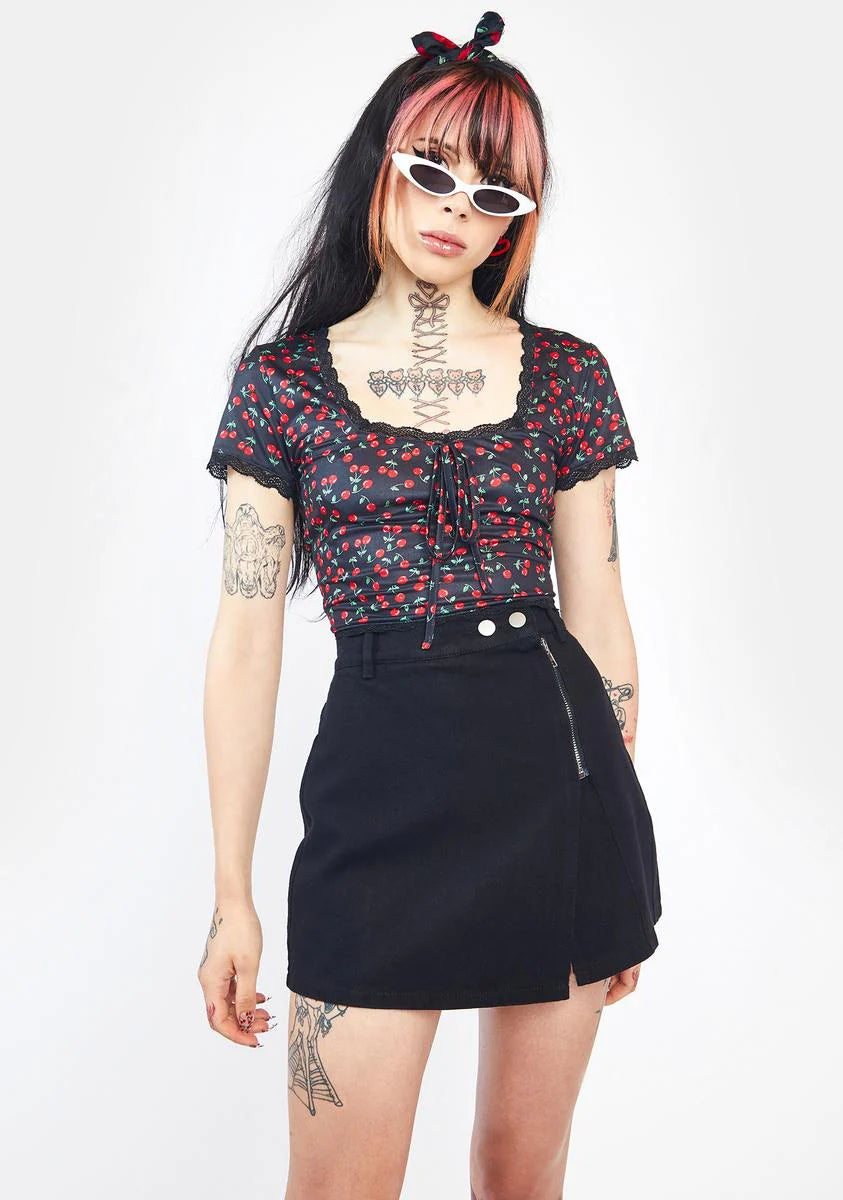 Secret Letter Denim Zip Up Mini Skirt