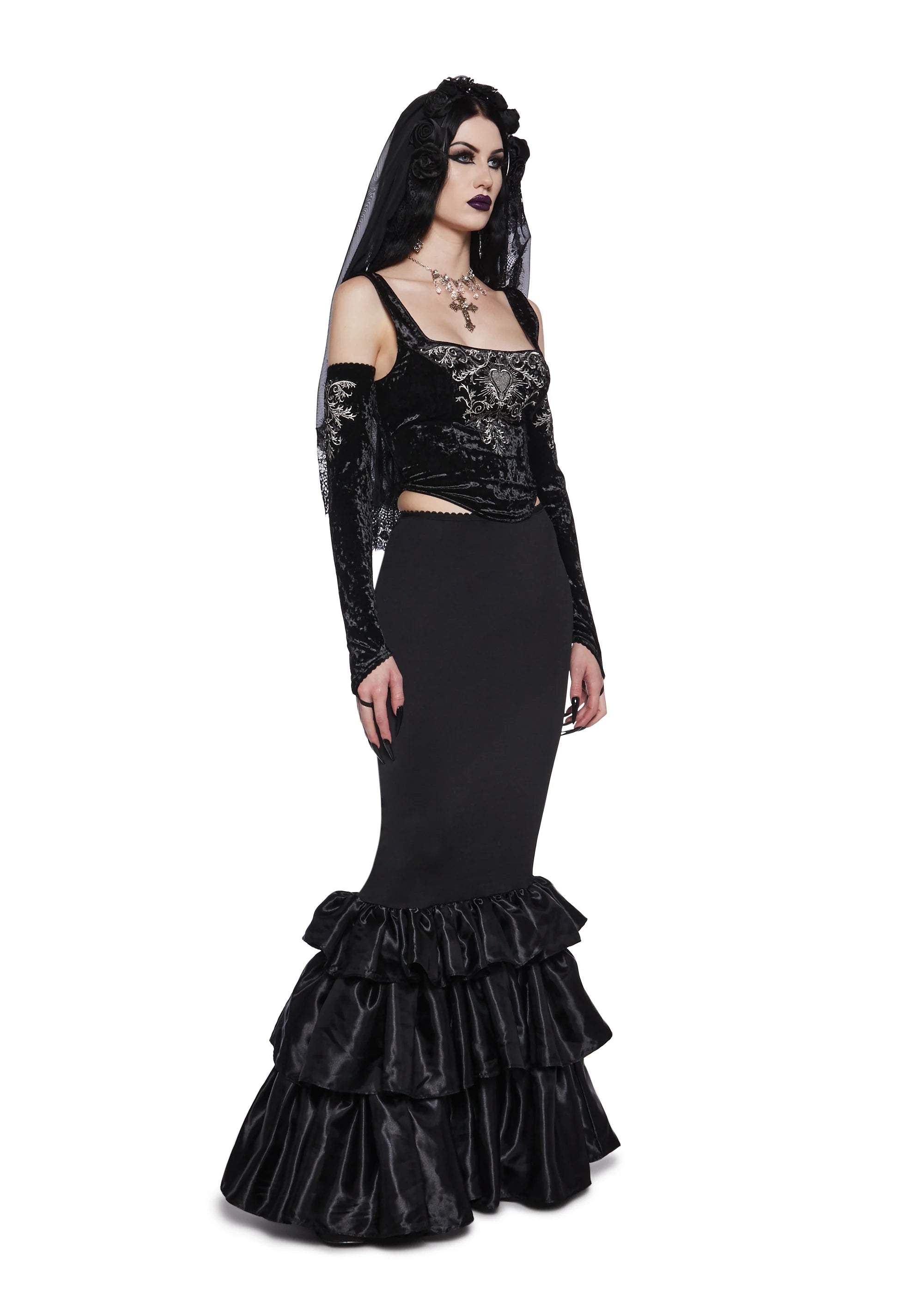 Shadowed Grandeur Bustle Maxi Skirt