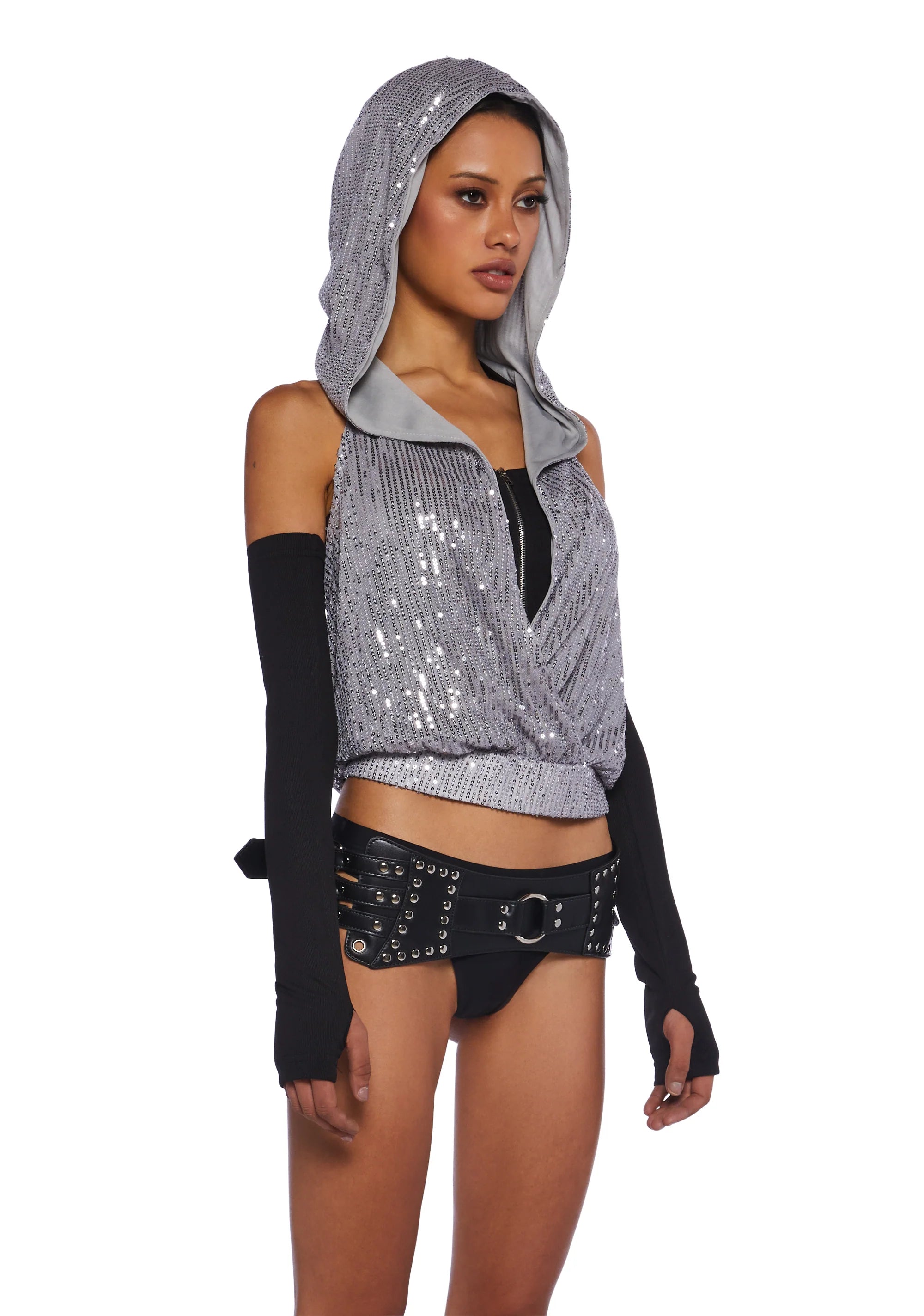Shimmer Escapes Sequined Hooded Top