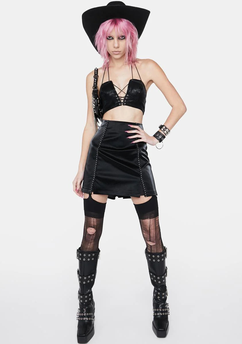 Slit Leather Mini Skirt