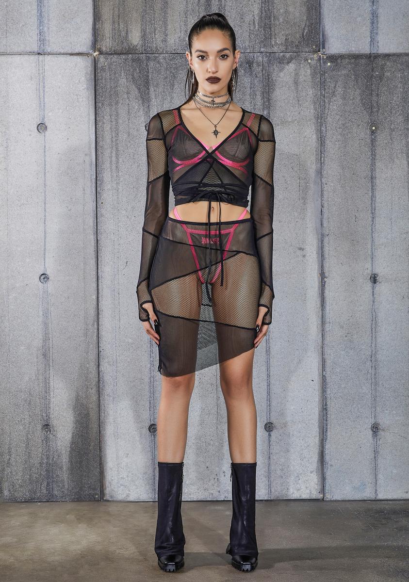 Snare Fishnet And Mesh Patchwork Skirt