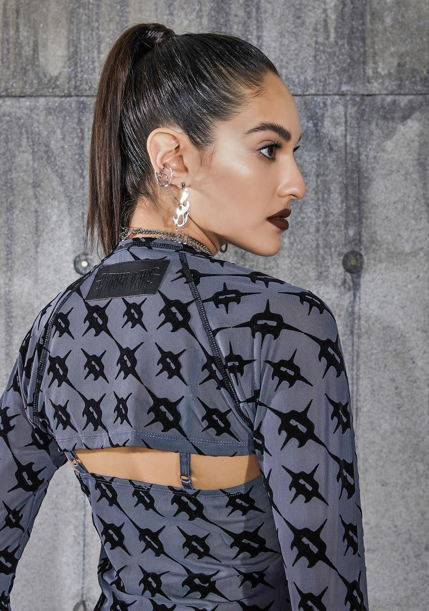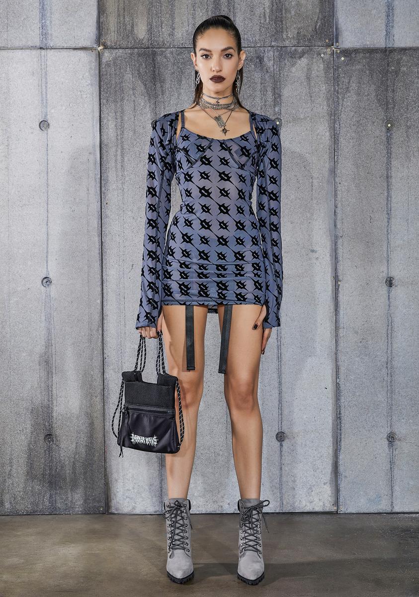 Snare Monogram Print Mesh Dress And Shrug Set