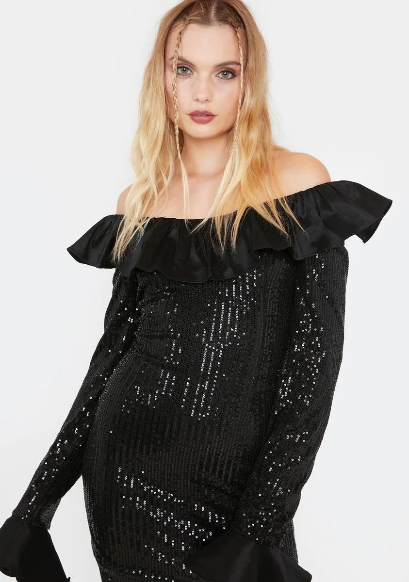 Statement Ruffle Sequin Mini Dress