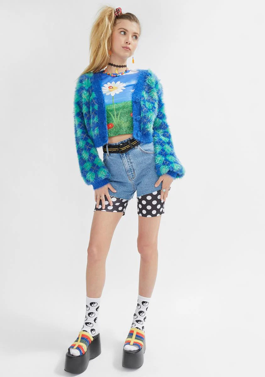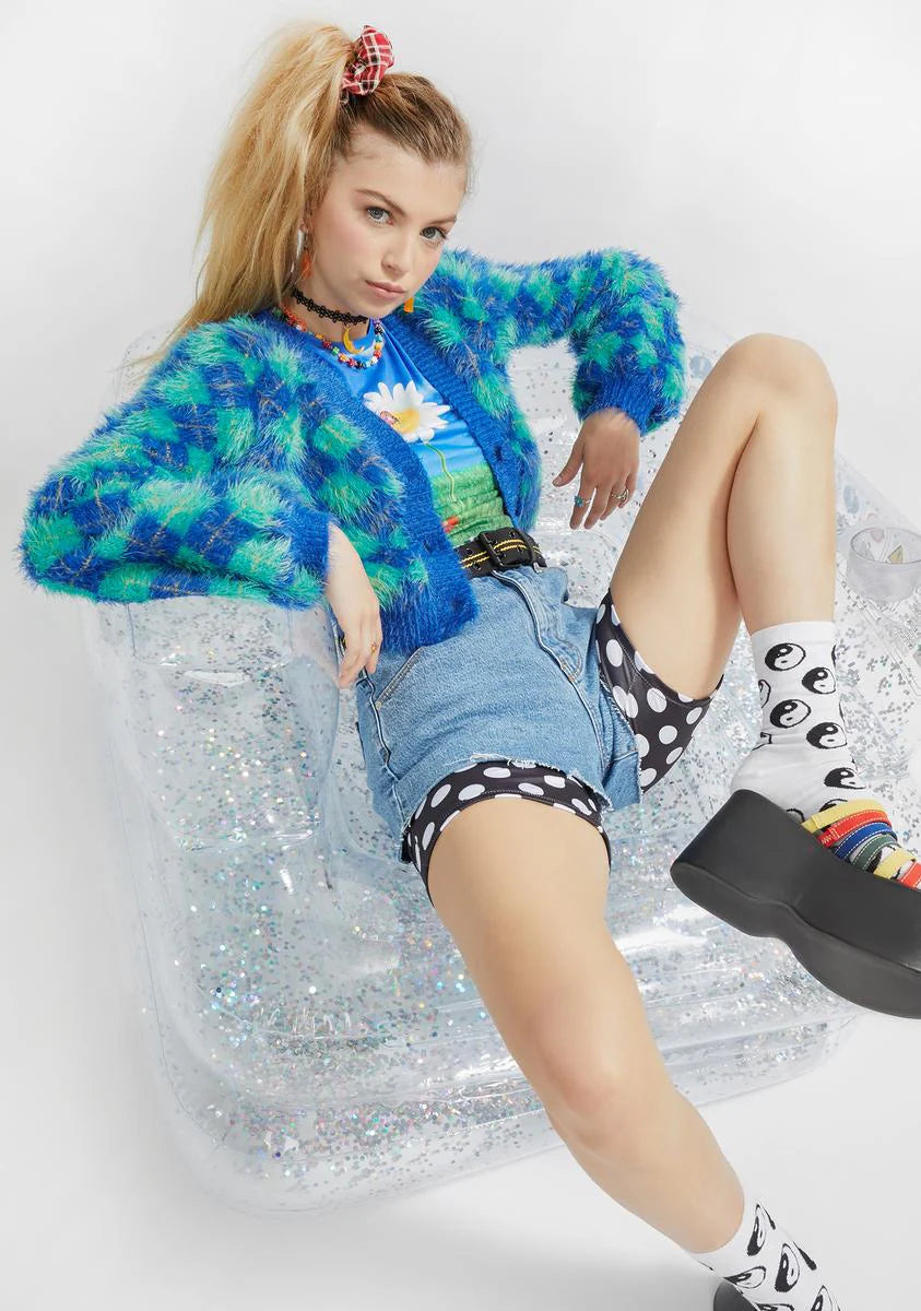 Static Cling Fuzzy Argyle Cardigan