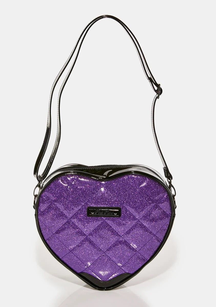 Studded Bat Quilted Heart Shoulder Bag