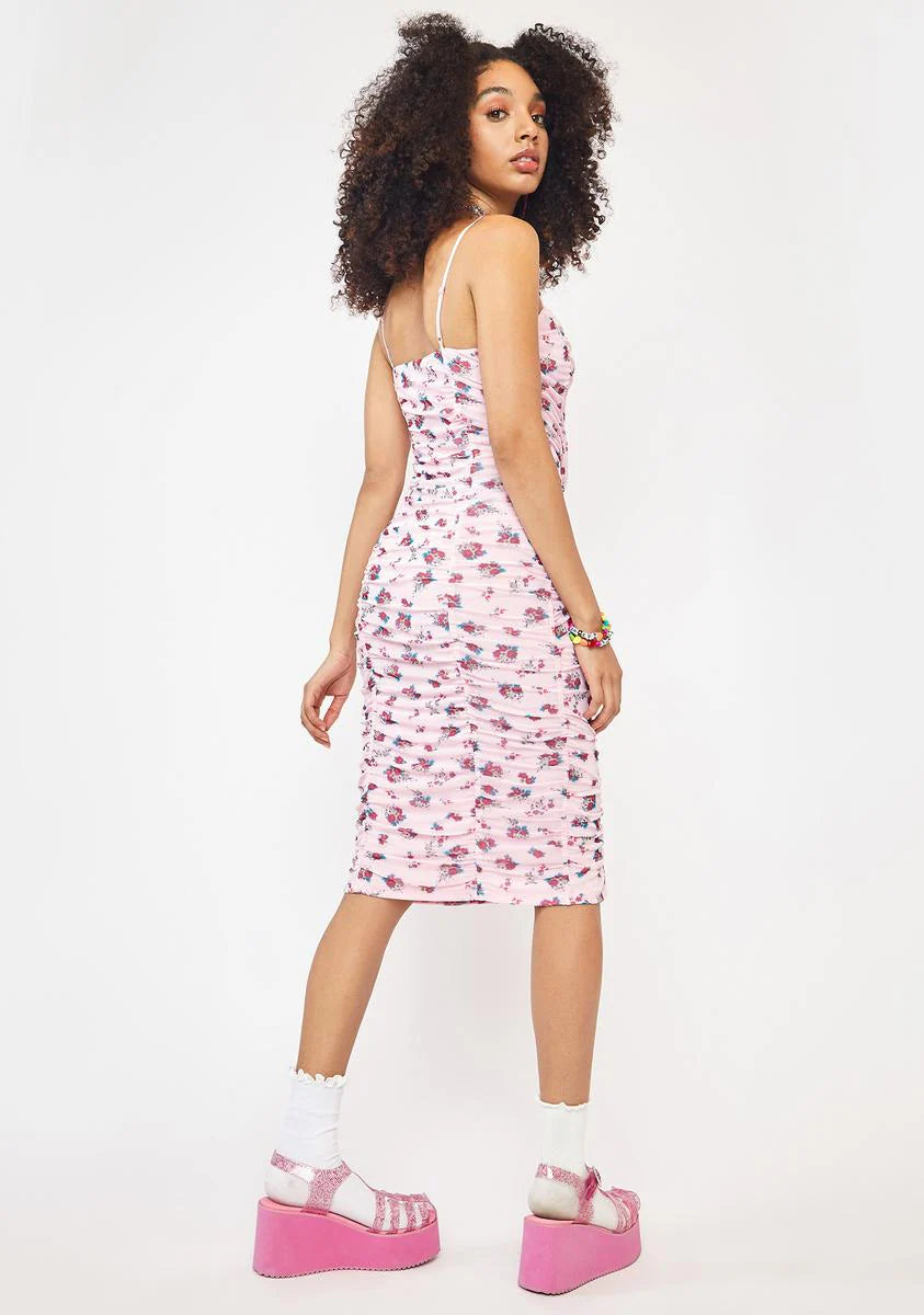 Summer Pink Bouquet Amara Midi Dress