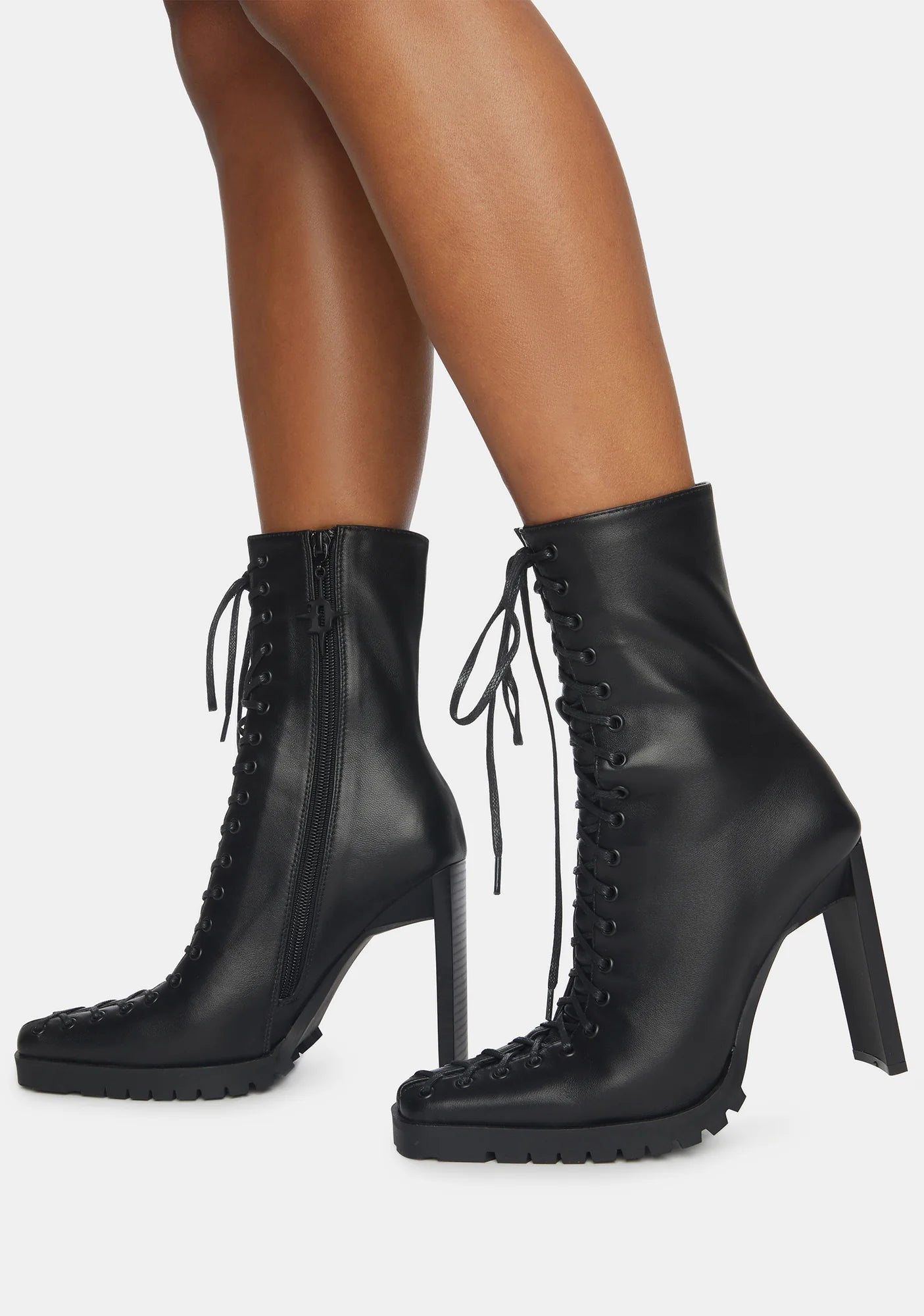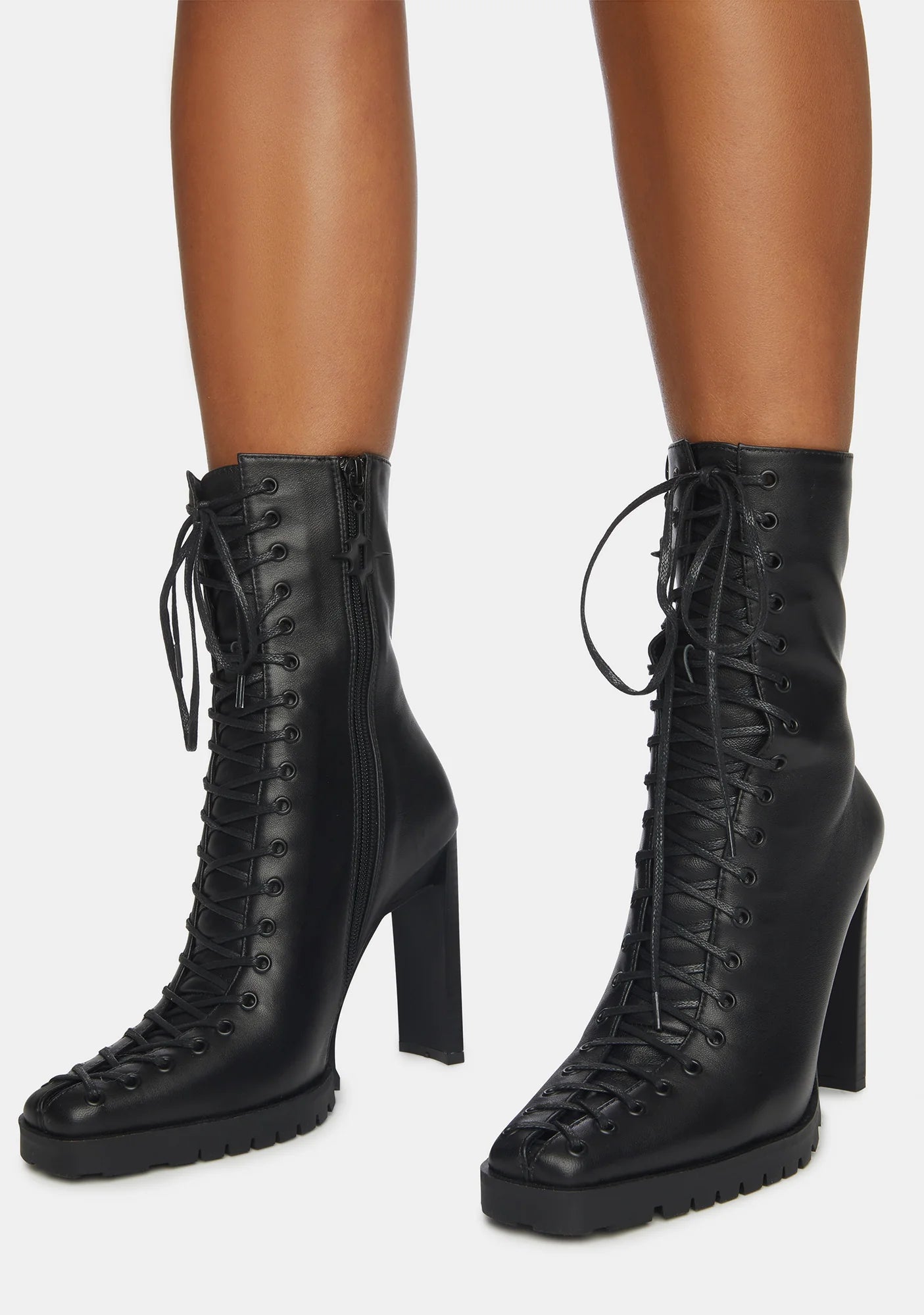 Synth Genuine Leather Lace-Up Ankle Boots