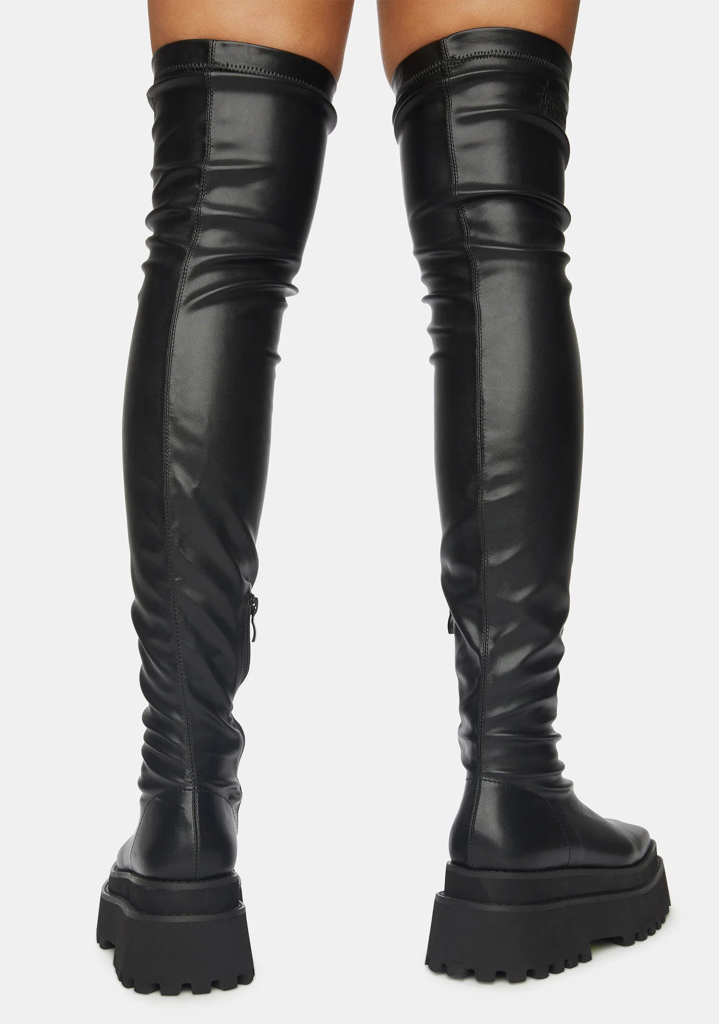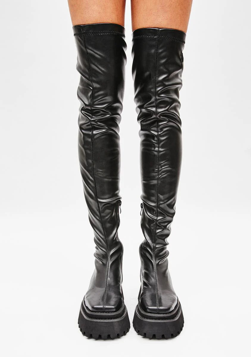 Synth Vegan Stretch Leather Over The Knee Boots