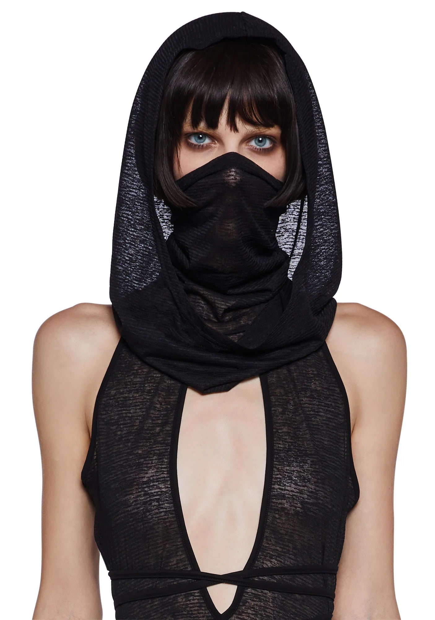 Tempo Hooded Maxi Keyhole Tank And Panty Set - Black