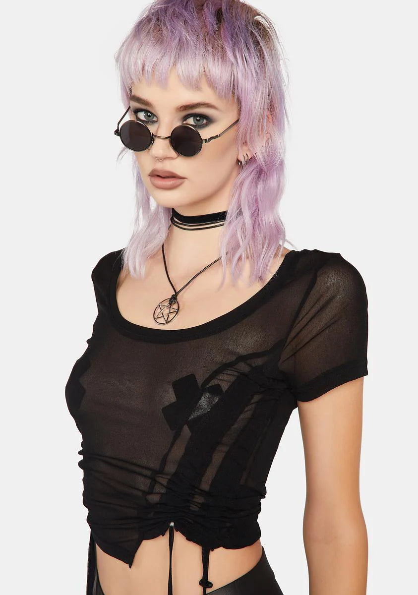 Translucent Fit Pleated Short T-Shirt