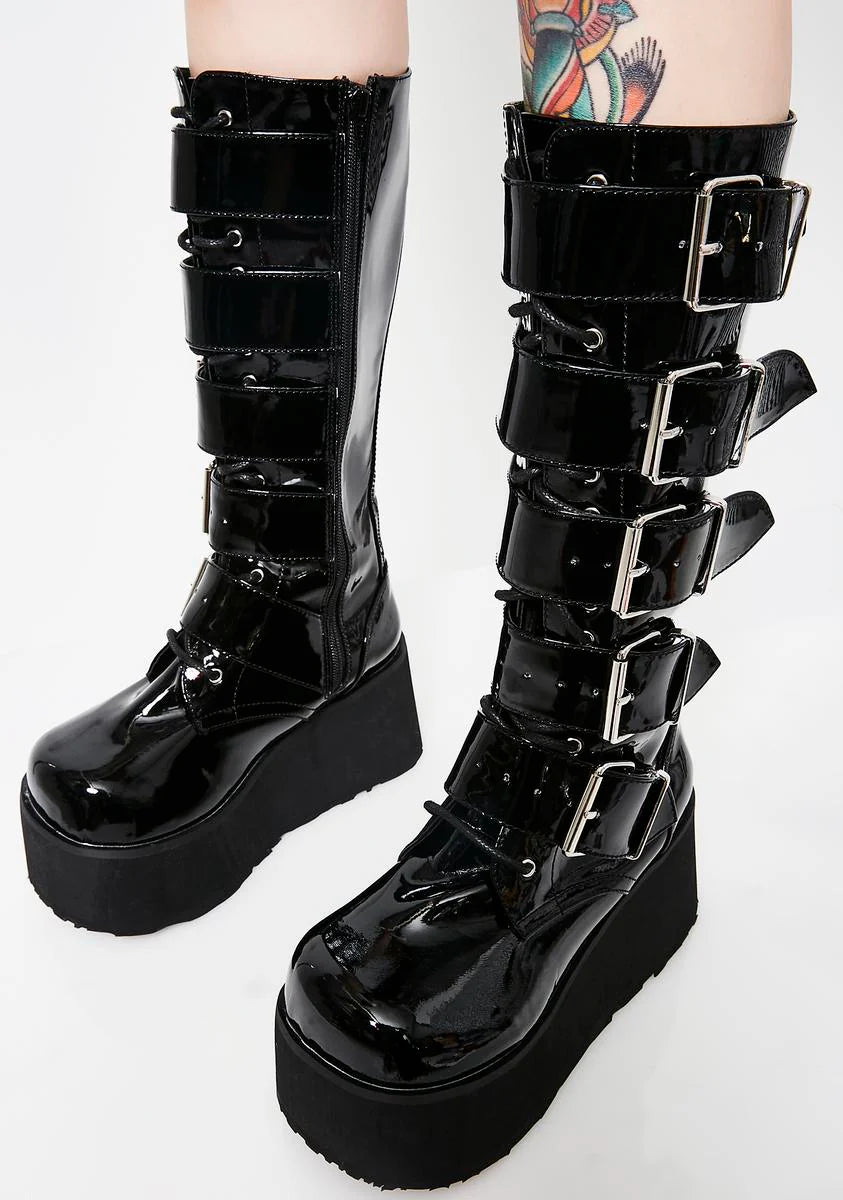 Trashville-518 Unisex Platform Knee High Boots